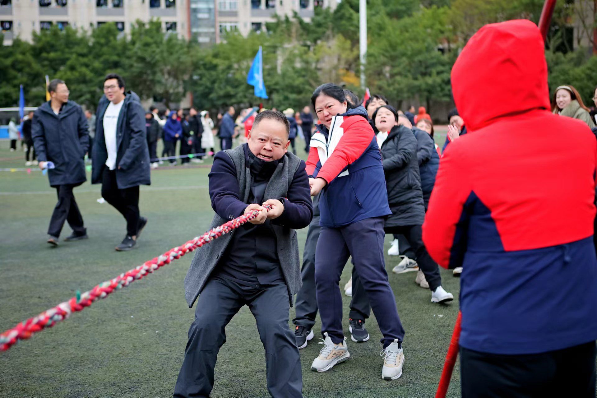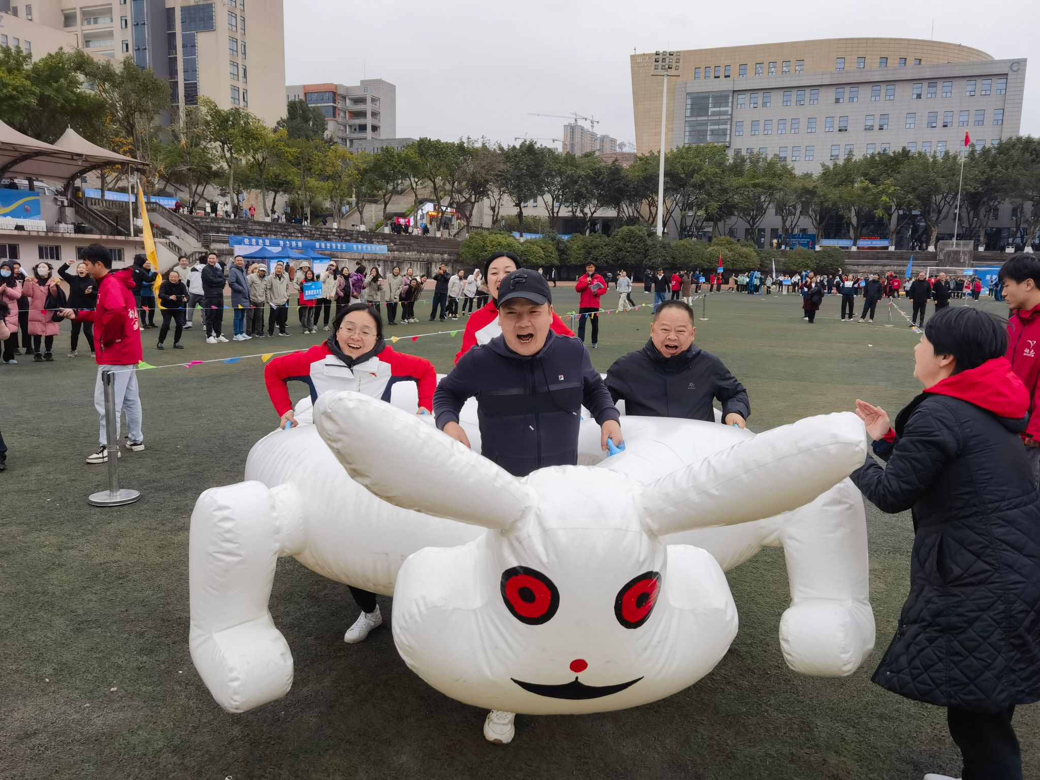 12月15日,由重庆市成人高等教育协会举办的主题为“初心永不变,共赴新征程”2023年趣味运动会在重庆工业职业技术学院举行,来自全市24所高校继续教育学院代表队参加了此次运动会,pp电子继续教育学院组织全体教职工参加了比赛。