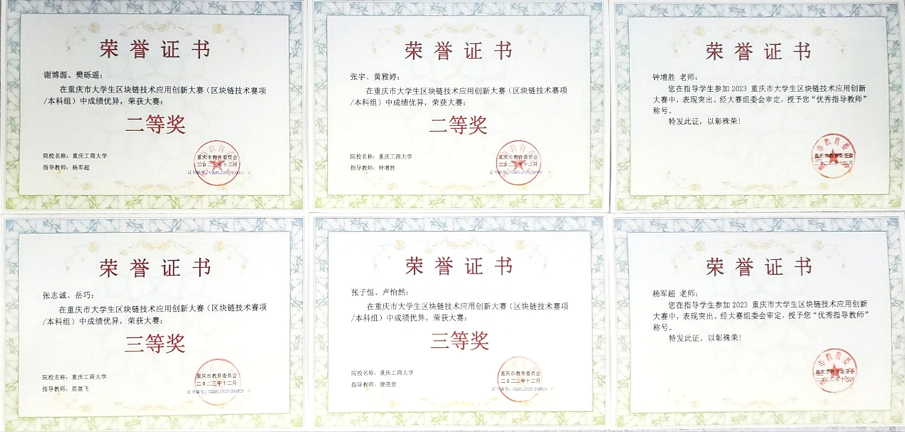 近日,由重庆市教育委员会主办、重庆城市科技学院承办的2023年重庆市大学生区块链技术应用创新大赛圆满落幕。在智能感知与区块链技术重庆市重点实验室的支持下,pp电子人工智能学院组织了4支队伍参加重庆市区块链大赛的技术组比拼并获佳绩。