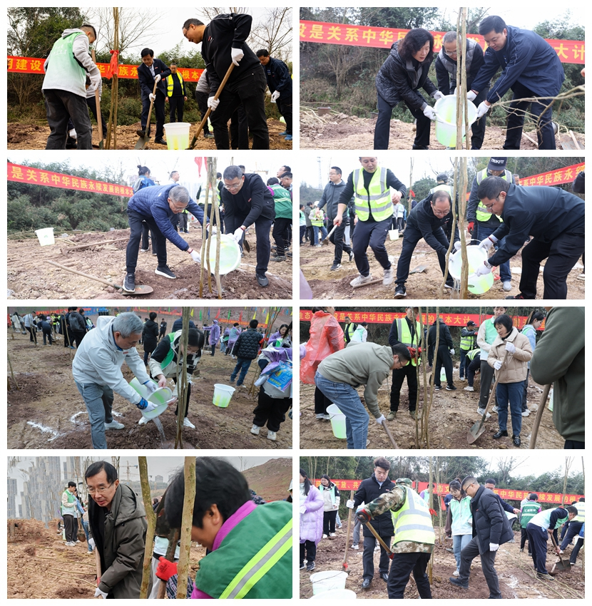曾维伦在致辞中指出,开展此次活动是学校深入贯彻落实习近平生态文明思想,牢固树立和践行绿水青山就是金山银山发展理念的重要举措。2023年,习近平总书记在参加首都义务植树活动时强调,“当前和今后一个时期,绿色发展是我国发展的重大战略,开展全民义务植树是推进国土绿化、建设美丽中国的生动实践。”十年树木,百年树人。今天,我们在校园种下的绿植不仅寄托着师生、校友对学校的美好祝愿,也是师生、校友与学校最深情的纽带。植树造林功在当代、利在千秋。他号召大家为重庆市建设美丽中国先行区,打造人与自然和谐共生的现代化市域范例贡献重工商大人力量。
