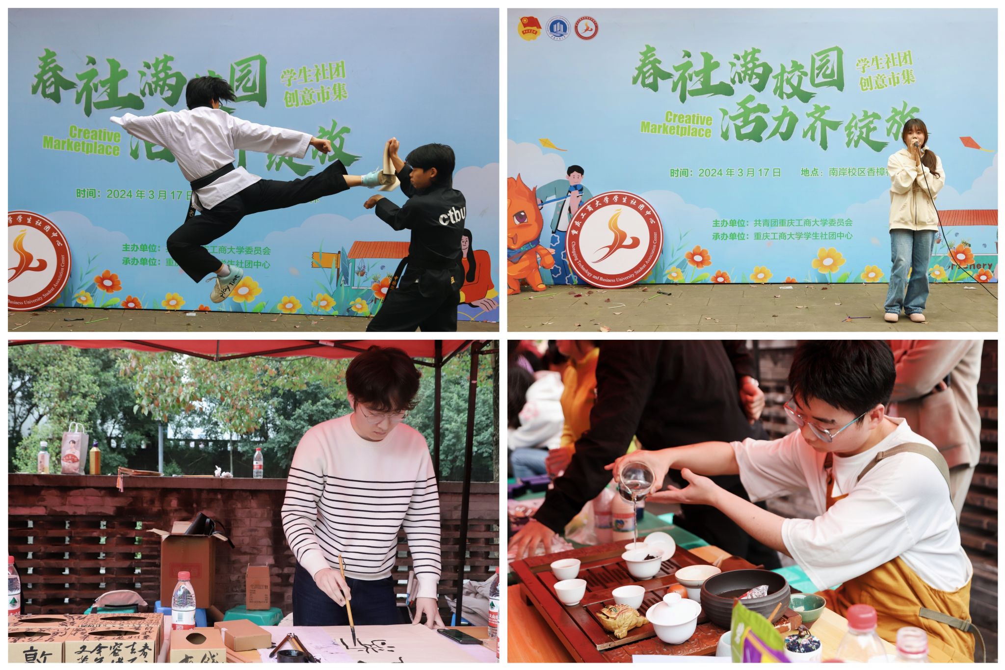 3月17日,由校团委主办、学生社团中心承办的2024年“春社满校园,活力齐绽放”学生社团创意市集在南岸校区火热开展。活动通过精致的现场布景、全新的活动流程以及趣味的互动方式,为学校学生社团提供风采展示舞台,搭建大学生青春创意的联动平台,为全校师生带来校园春日的别样体验。