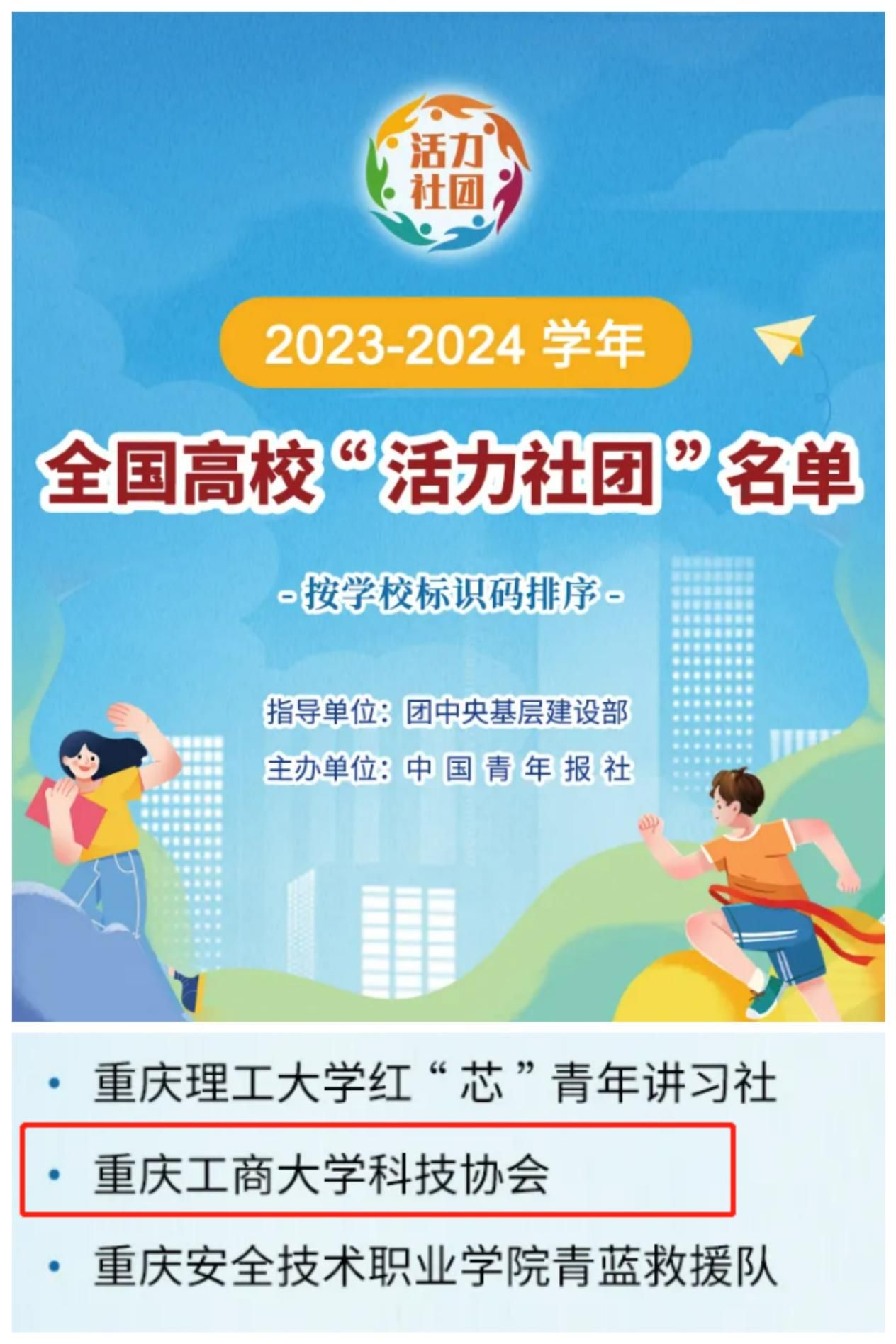 近日,由团中央基层建设部指导、中国青年报社主办的2023-2024学年全国高校“活力社团”评选活动公布获奖名单。pp电子科技协会从参与评选活动的全国3000余所高校十万余社团中脱颖而出,获评全国高校百强活力社团(重庆市仅3个高校社团获评该奖项)。