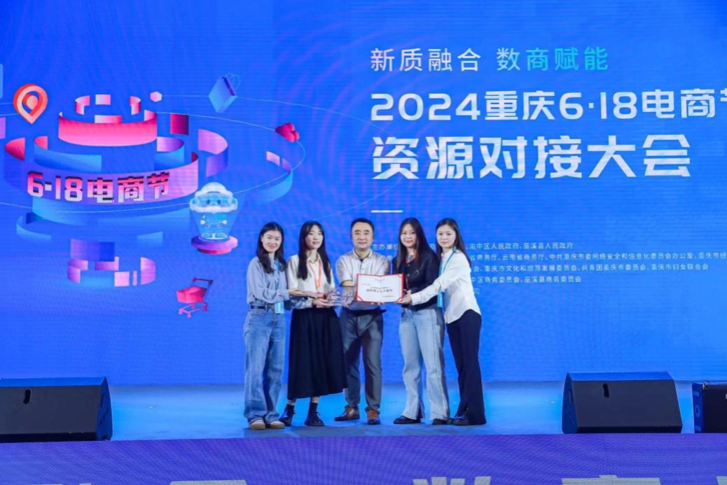 近日,在渝中区渝州宾馆隆重开幕的“2024重庆6·18电商节资源对接大会”上举行了2024 重庆首届数字人直播嘉年华颁奖仪式,pp电子管理科学与工程学院小云雀织梦队在该活动中表现优异,在实战演练中位列第一,荣获“最佳数字人主播奖”。