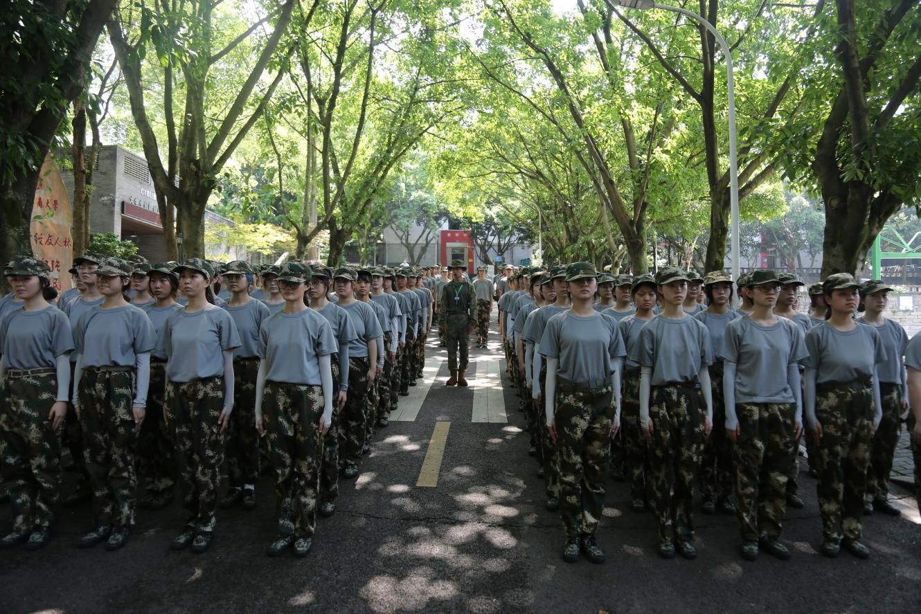初阳跃上操场的边际,学子身着迷彩服,心潮澎湃。