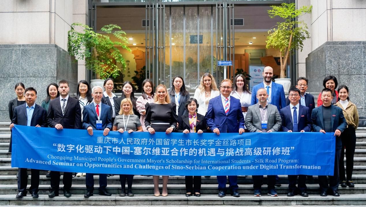11月11日上午,2024年重庆市人民政府外国留学生市长奖学金丝路项目——“数字化驱动下中塞合作的机遇与挑战高级研修班”在pp电子图书馆S116智慧教室开班,该项目由学校国际商学院和留学生院联合承办。