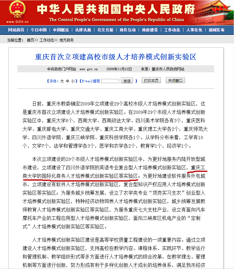 学院获批重庆市“国际化商务人才培养模式创新实验区”