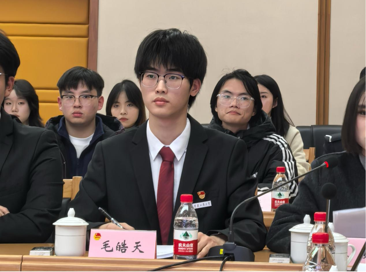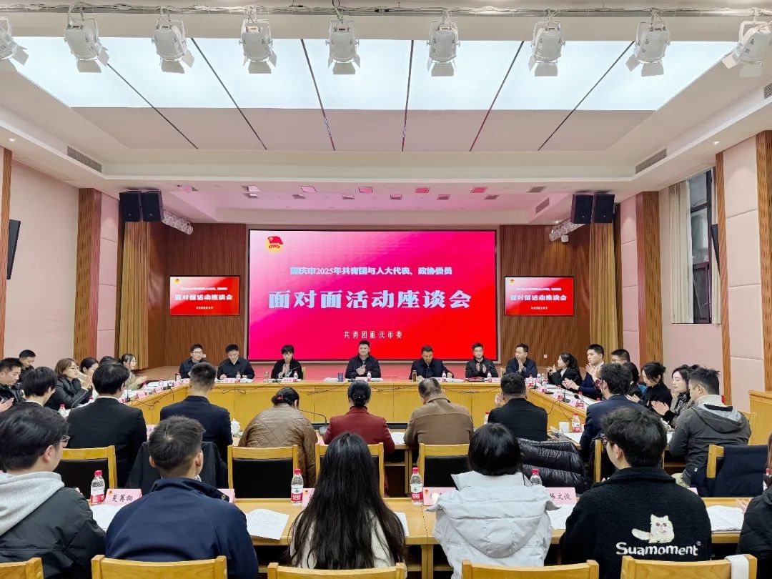 2025年1月2日,重庆市“共青团与人大代表、政协委员面对面”活动上,pp电子金融学院毛皓天同学作为获得优秀提案奖的学生代表在会上作分享交流。