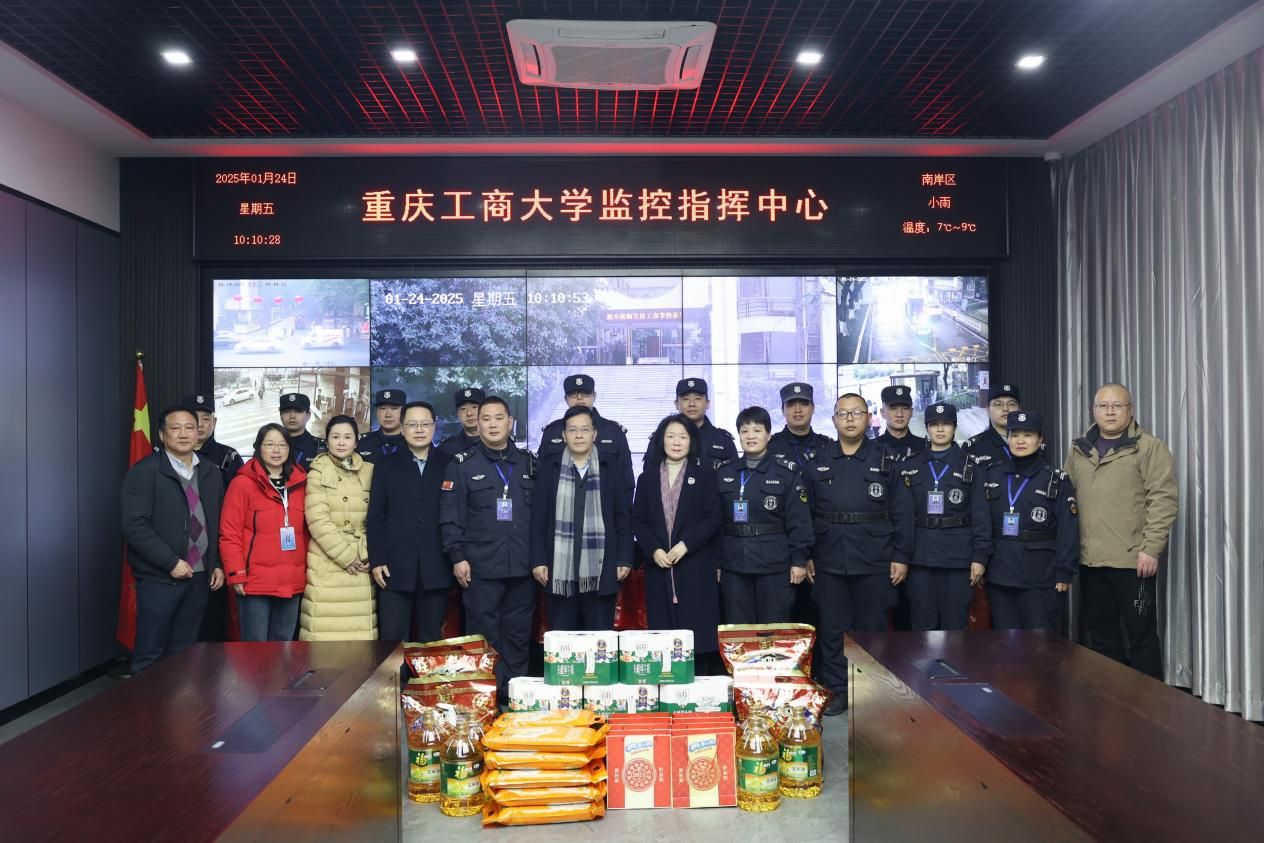 1月24日上午,在乙巳春节即将来临之际,学校党委书记曾维伦,党委副书记宋豫带领党政办公室、党委保卫部(保卫处)、后勤处等相关职能部门负责人先后来到后勤综合楼、保卫处和厚德楼等地,走访慰问坚守岗位的值班教职工。