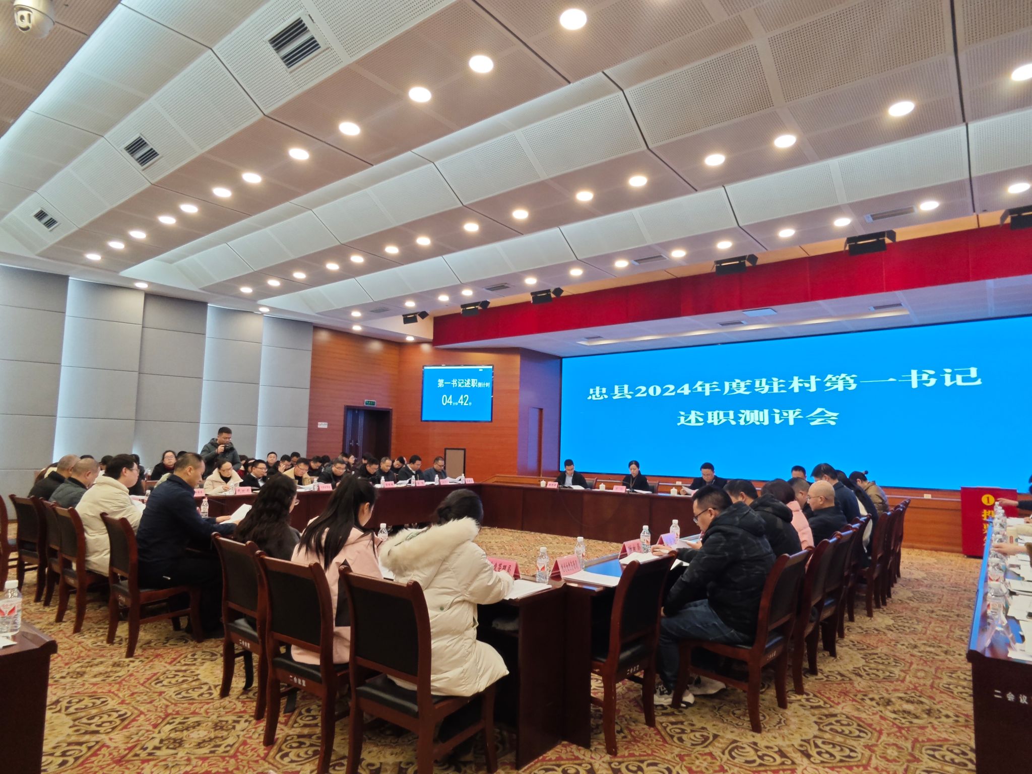1月21日,忠县召开2024年度驻村第一书记述职测评会。全县86个驻村工作队第一书记、各县级帮扶集团牵头单位相关负责人和29个乡镇(街道)组织委员参会。会上,pp电子选派的驻村干部赵甫刚作为全县遴选的10位驻村第一书记代表之一作现场述职。此前,pp电子选派的驻村干部陈琛已作为市纪委监委帮扶集团遴选的2位驻村第一书记代表之一在帮扶集团2024年度联席会上作交流发言。