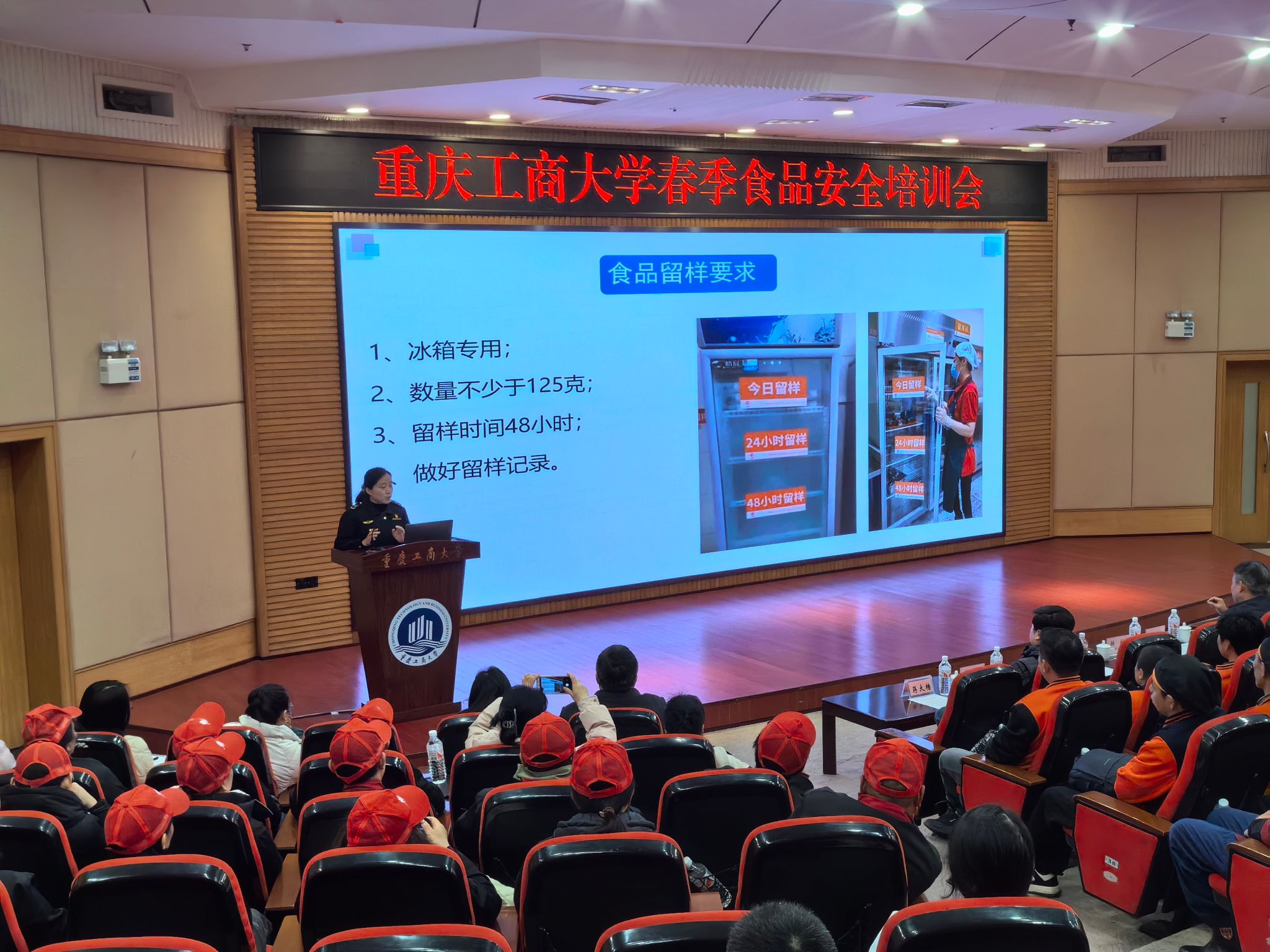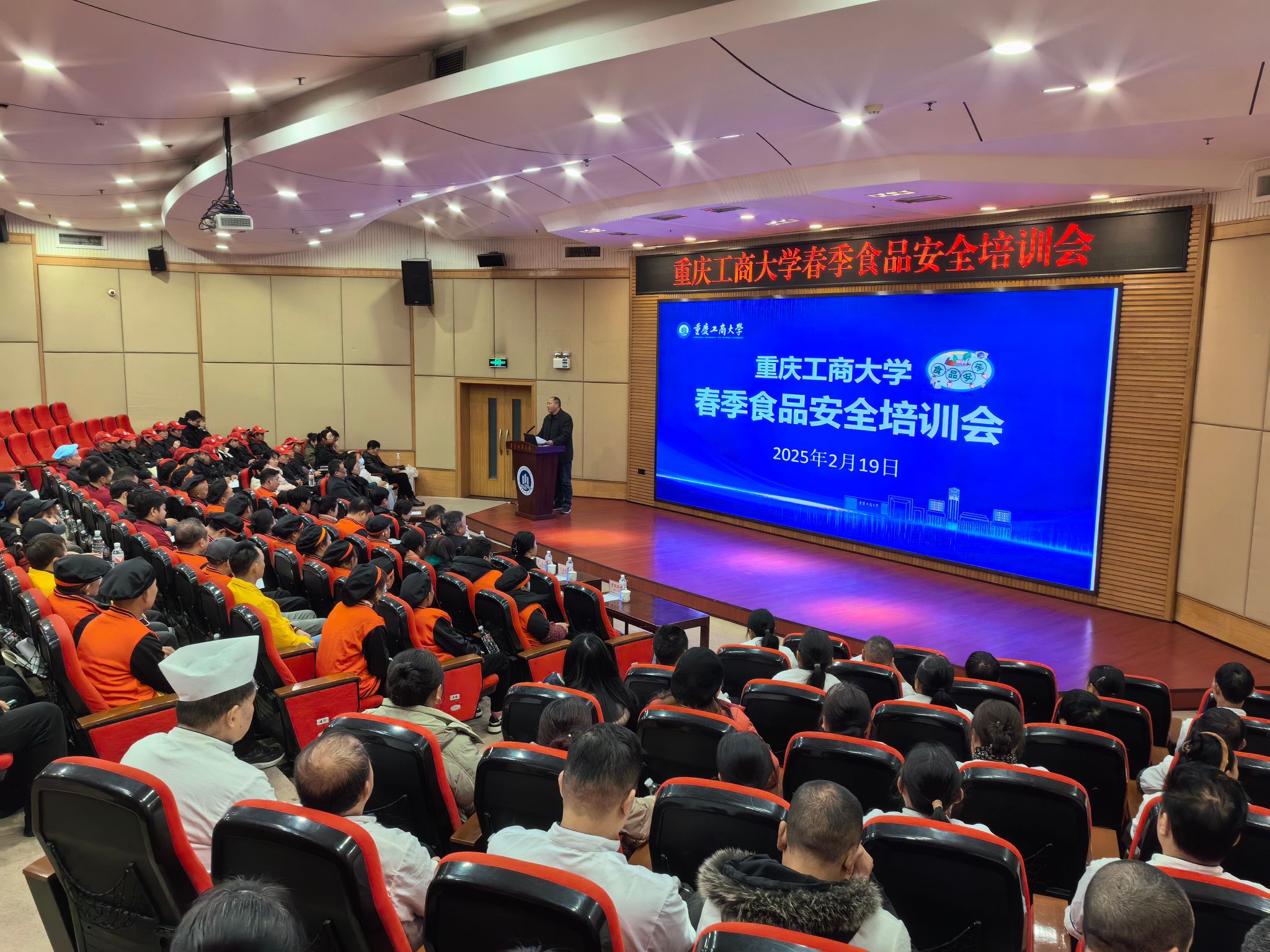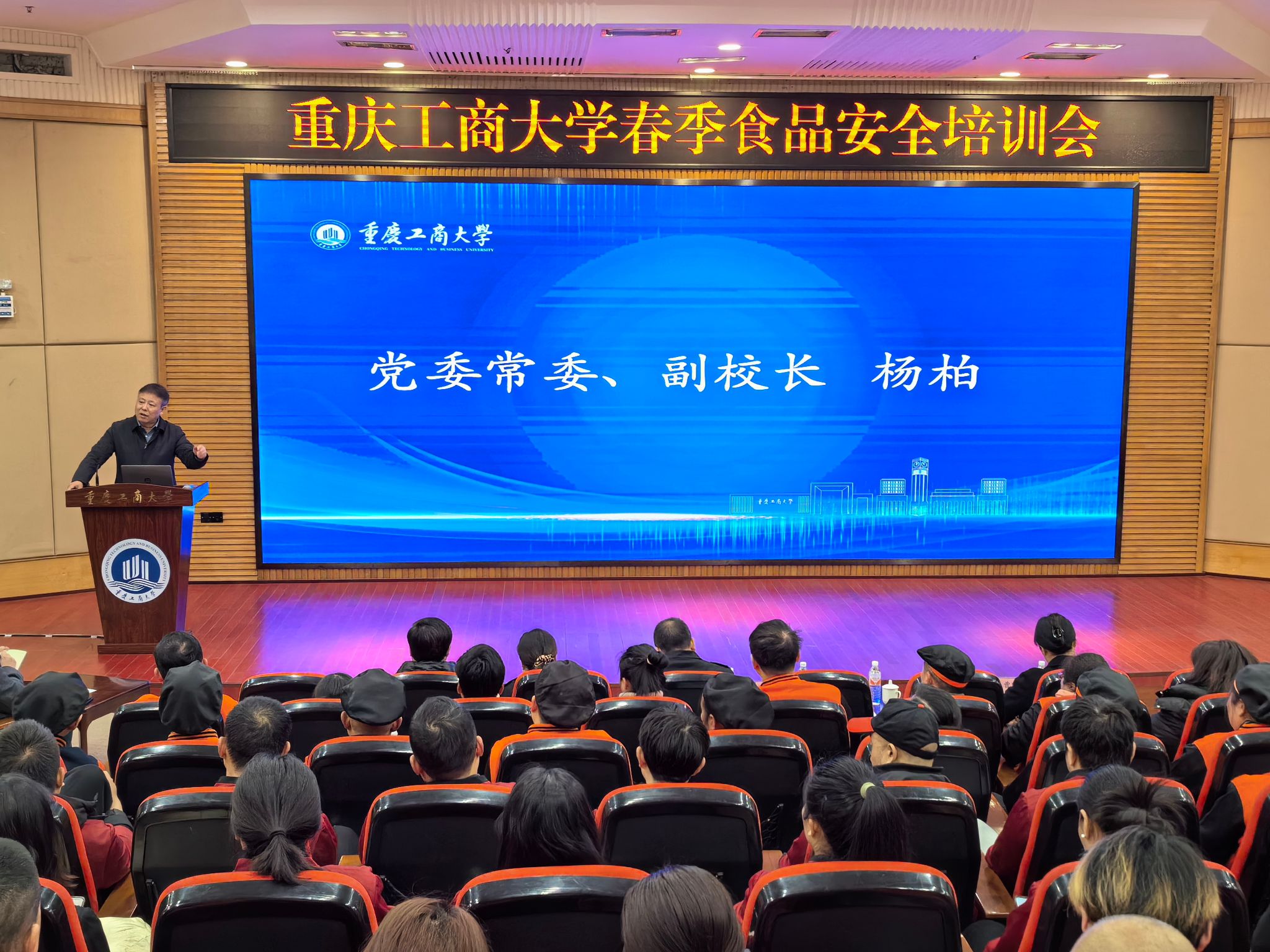 2月19日,学校在南岸校区博智楼7200报告厅召开2025年春季食品安全培训会。会议邀请南岸区市场监督管理局食品安全监管科科长曾万明、副科长薛原,海棠溪街道监督管理所所长蒋大橹等到场指导。学校党委常委、副校长杨柏出席会议,后勤处、校内各食堂相关人员参加培训。会议由后勤处副处长杜元林主持。