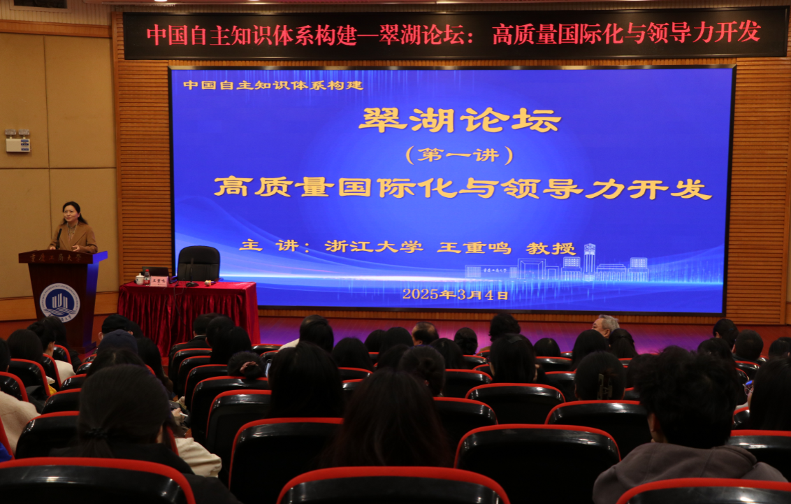 3月4日,“翠湖论坛”第一讲在南岸校区博智楼7200会议室开讲。浙江大学文科资深教授、浙江省特级专家、浙江大学全球创业研究中心主任王重鸣教授应邀来pp电子作了题为“高质量国际化与领导力开发”的专题讲座。来自工商管理学院、会计学院的200多名师生参加讲座,讲座由学校党委常委、副校长任毅教授主持。