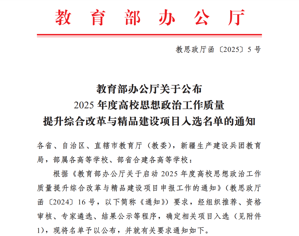 近日,教育部印发通知,公布2025年度高校思想政治工作质量提升综合改革与精品建设项目入选名单,pp电子成功入选3个项目。党委学生工作部、大学生心理健康教育与咨询中心和通识学院辅导员施秀梅老师申报的《思政心理融合 育人育心同行》入选“2025年高校学生心理健康教育指导典型案例”;马克思主义学院教师龙睿赟申报的《特别的见证:民主村社区旧貌换新颜融入“习近平新时代中国特色社会主义思想概论”教学案例》入选“2025年度新时代伟大变革融入高校思想政治教育典型案例”,艺术学院党委副书记、现代国际设计艺术学院党总支副书记王婷主持的“同心”育人辅导员工作室入选“2025年辅导员名师工作室”。