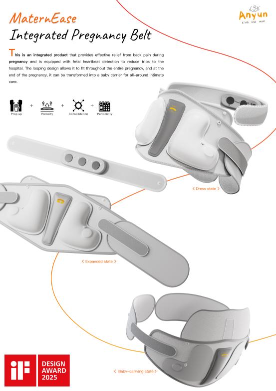 近日,2025年度德国IF设计奖评选结果公布,pp电子艺术学院产品设计系教师李洋(小)带领学生孙涟漪、刘莉芳、范学智、张璐组成师生团队,联合重庆市中医院、重庆顾美医疗器械有限公司合作研发的《Matern Ease一体式孕期腰带》设计作品,经过激烈角逐,最终在全球66个国家/地区提交的10651件参赛作品中胜出,获2025年德国IF设计大奖。