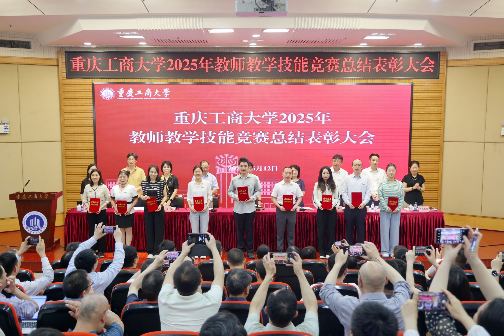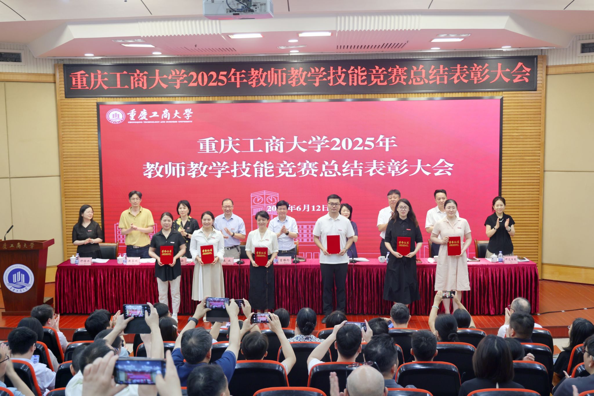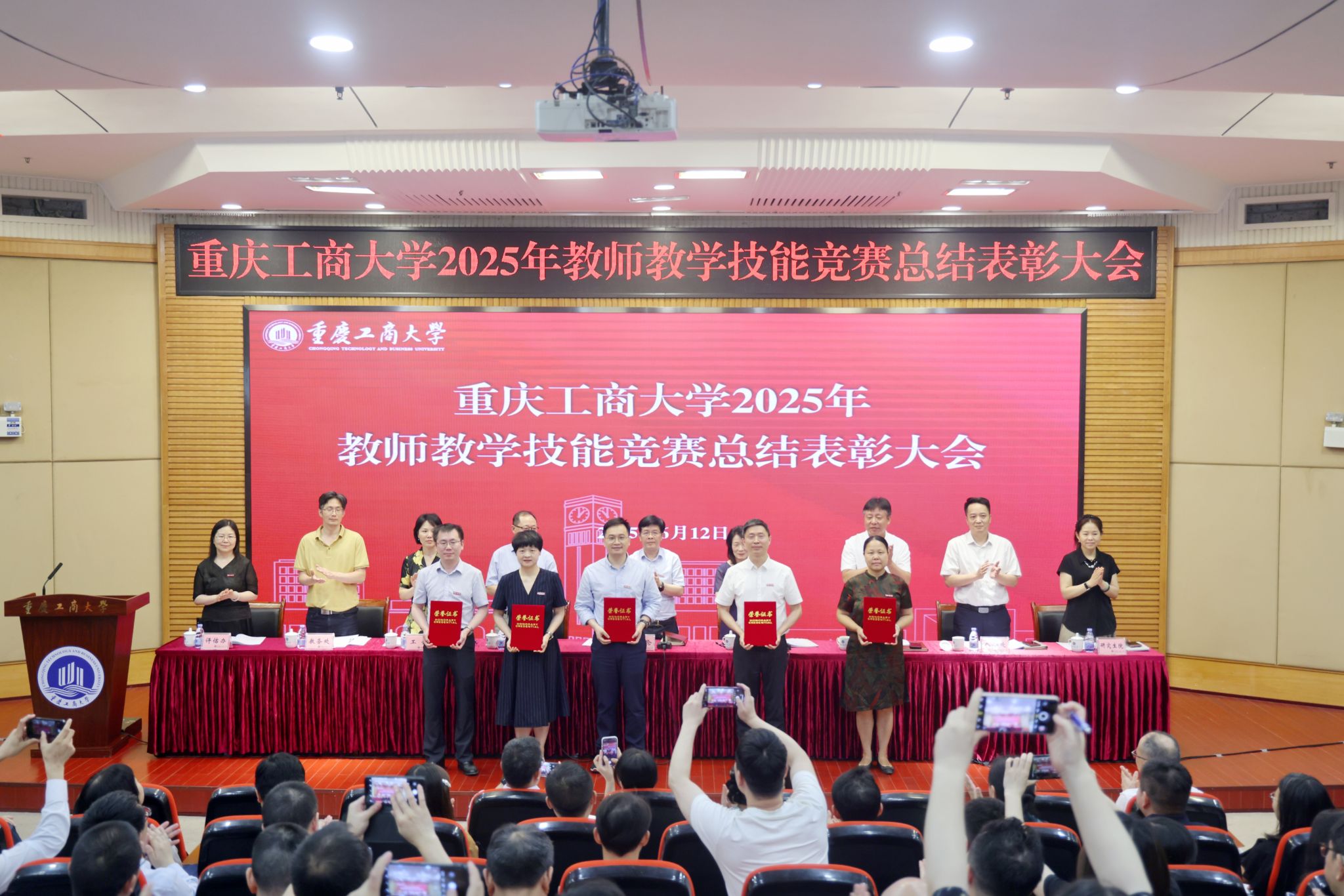 张波宣读了2025年教师教学技能竞赛表彰文件。参会领导为获奖教师和优秀组织奖获奖单位颁奖。