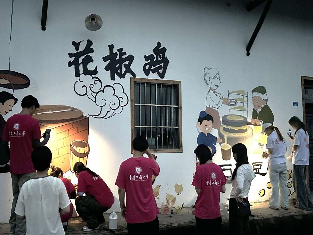 7月6日至7日,艺术学院、现代国际设计艺术学院联合组建的“艺创乡韵”社会实践团赴江津区先锋镇保坪村雨仙农谷,以“艺术赋能乡村”为主题,通过实地调研和墙绘创作为当地农旅融合发展注入青春活力。实践团与当地负责人座谈交流,深入了解保坪村发展规划、雨仙农谷产业定位、运营现状及特色资源。团队成员结合艺术设计专业优势,围绕雨仙农谷品牌形象提升、游客体验优化、文化内涵挖掘等议题积极建言献策。基于前期的调研成果,实践团开展墙绘创作实践,承担为雨仙农谷打造两面特色文化墙的重要任务。成员们认真进行墙面处理、线稿绘制、色彩填充,将原本单调的墙面绘制为精美墙画,成为展现乡村文化、讲述雨仙农谷故事的艺术窗口。实践团学子将艺术设计、美育教育与社会实践相结合,不仅为乡村发展提供了智力支持和创意源泉,也在实践中增长才干、锤炼品格。