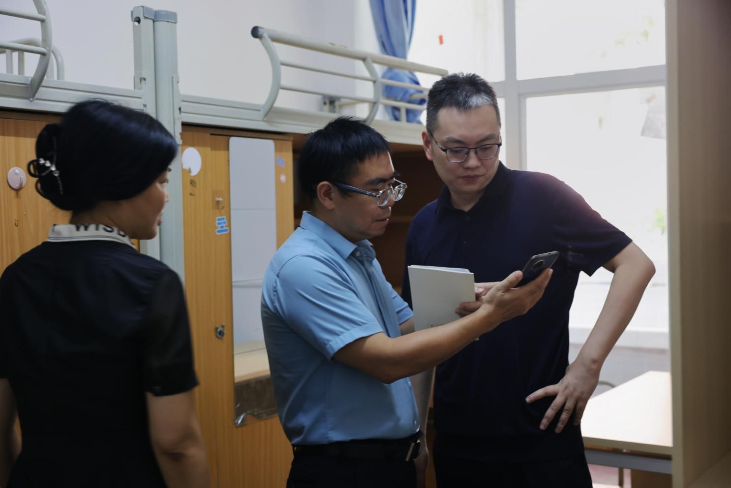 南区十三栋学生公寓作为学校的老宿舍,经过全面改造将正式投入使用。在检查过程中,温涛强调,宿舍改造是提升办学条件的关键举措,验收时要对宿舍进行详细检查,不留死角,要做到一查墙面防水,确保无渗漏;二排外墙瓷砖,消除脱落隐患;三做室内深度清洁,呈现窗明几净;四植院坝绿植,提升舒适度。他还指出,宿舍改造需严格按标准执行,确保居住质量,且要重启并优化寝室报修维护平台,及时响应学生报修需求。