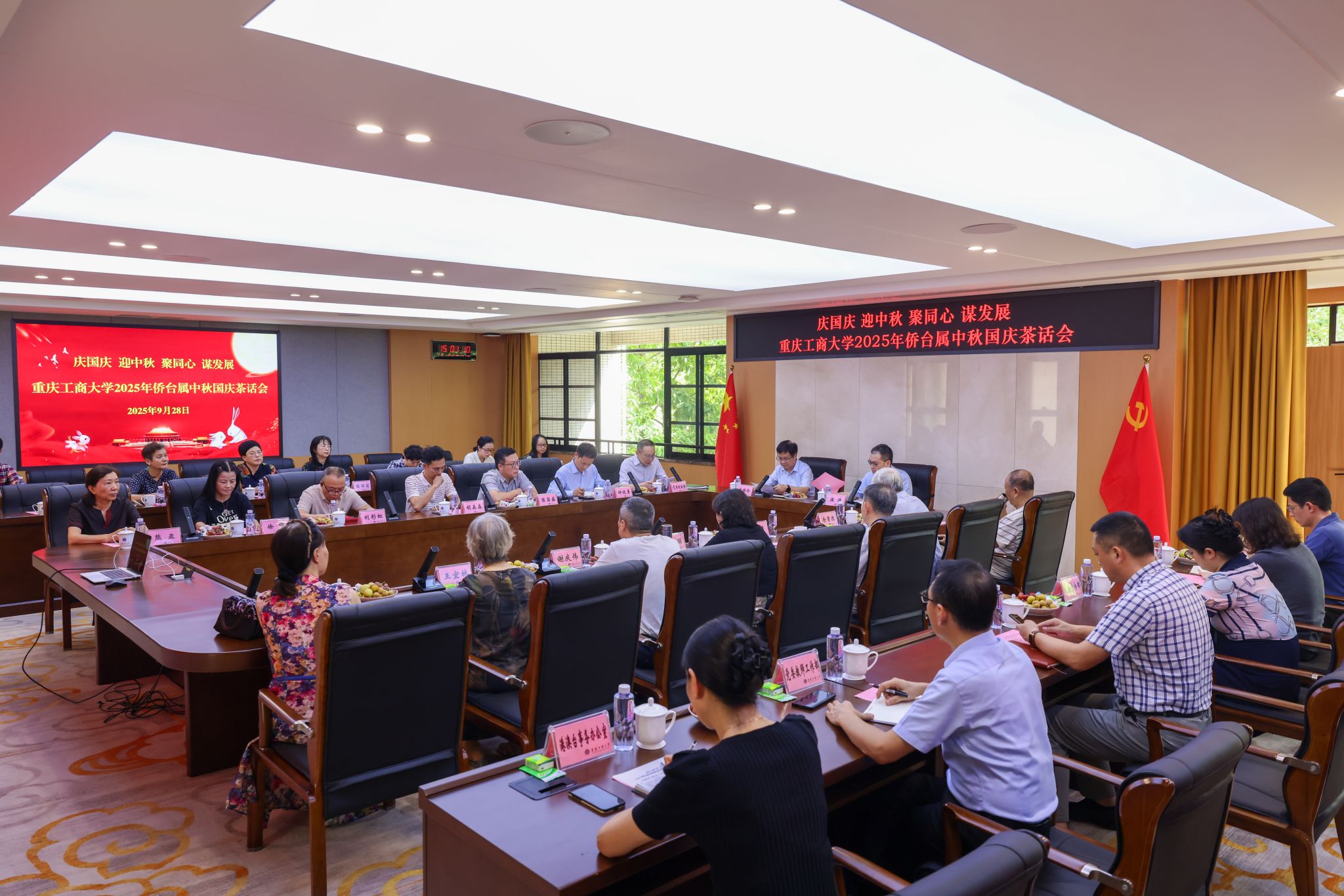 9月28日下午,pp电子在厚德楼3019会议室召开“迎中秋 庆国庆 聚同心 谋发展——pp电子游戏平台网站2025年侨台属中秋国庆茶话会”。校党委书记曾维伦,校长温涛,党政办公室、党委组织部、党委宣传部、党委统战部、党委离退休工作部、党委教师工作部、港澳台事务办公室等部门负责同志,以及20余名侨台属代表参加了会议。会议由校党委常委、统战部部长华杰主持。