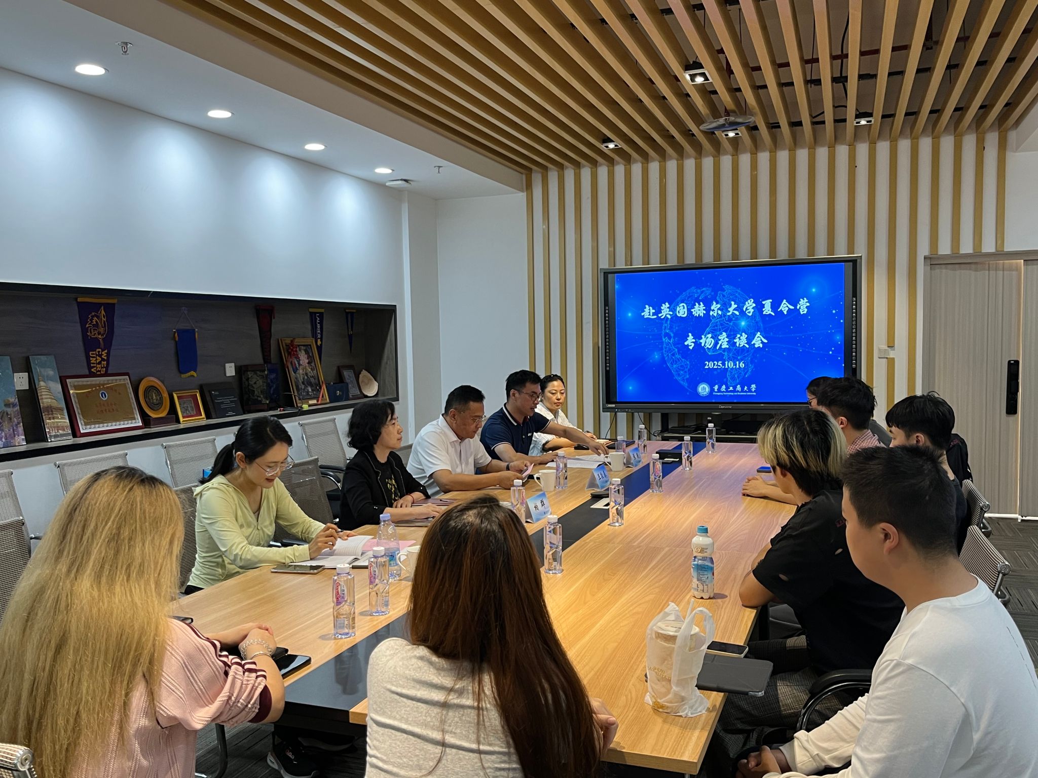 近日,pp电子国际合作与交流处组织召开 2025 年赴英国赫尔大学夏令营专题座谈会。校党委常委、副校长柏群,项目资助校友、重庆新途进出口贸易有限公司董事长王敬春出席会议,与夏令营全体成员共同回顾交流历程、分享学习心得。会议由国际合作与交流处处长张轶主持。