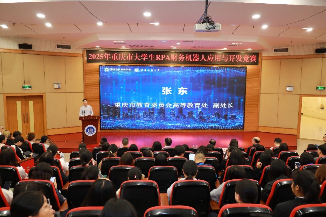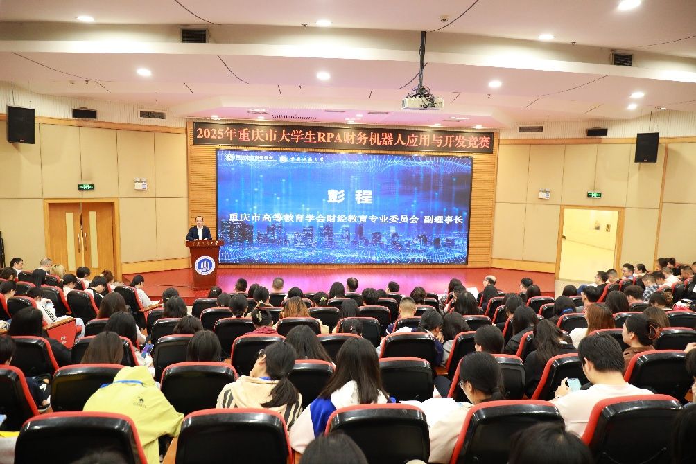 2025年10月18日,2025年重庆市大学生RPA财务机器人应用与开发竞赛开幕式在pp电子成功举办。本次比赛由重庆市教育委员会主办,pp电子游戏平台网站、重庆市高等教育学会财经教育专业委员会、重庆市交叉学科专业类教学指导委员会、pp电子游戏平台网站会计学院、pp电子游戏平台网站经济管理实验教学中心承办。新道科技股份有限公司、厦门科云信息科技有限公司提供技术支持。pp电子党委常委、副校长杨柏,重庆市教育委员会高教处副处长张东,重庆市高等教育学会财经教育专委会副理事长彭程,pp电子教务处副处长韦晓兰,会计学院党委书记邓德敏、副院长梅波,企业代表和来自重庆市本科组24所院校、高职组21所院校,共计156支队伍,约800名师生参加会议。开幕式由邓德敏主持。