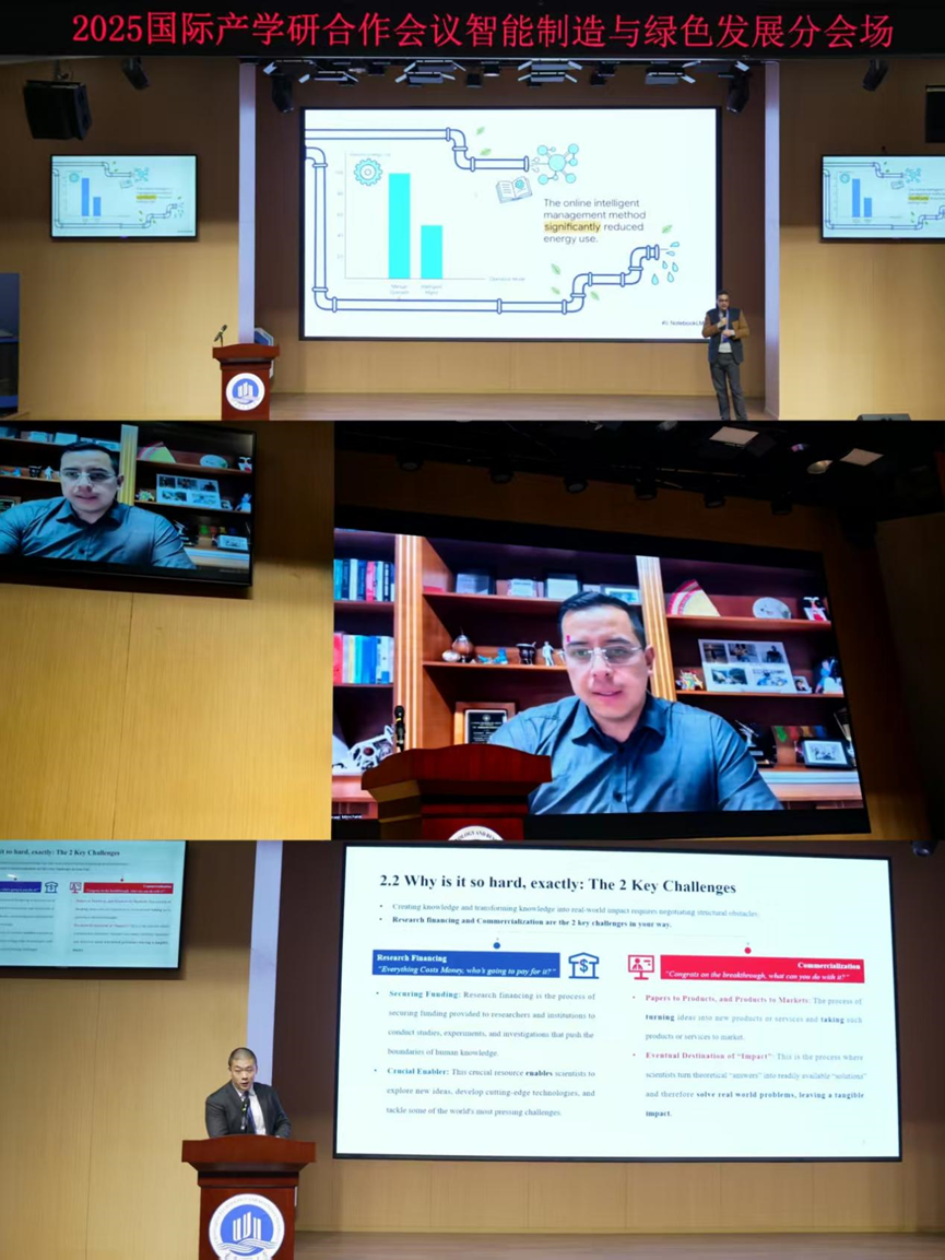 本次会议聚焦智能制造和绿色发展领域,开展了三场高水平学术报告。埃及住房与建筑研究中心Mohamed Said Mahmoud Mohamed Salem教授围绕废水处理厂的智能化管理和运行分享了最新研究成果。厄瓜多尔昆卡大学Luis Ismael Minchala Avila教授聚焦桥接理论与应用,分享了现代工业系统的非传统控制策略。兴业证券股份有限公司西南投行部资深经理王一霖先生则从资本市场视角,阐述了私人资本与金融市场在推动先进研发中的关键作用,并探讨市场端与资本市场中先进研究计划中的“X元素”。