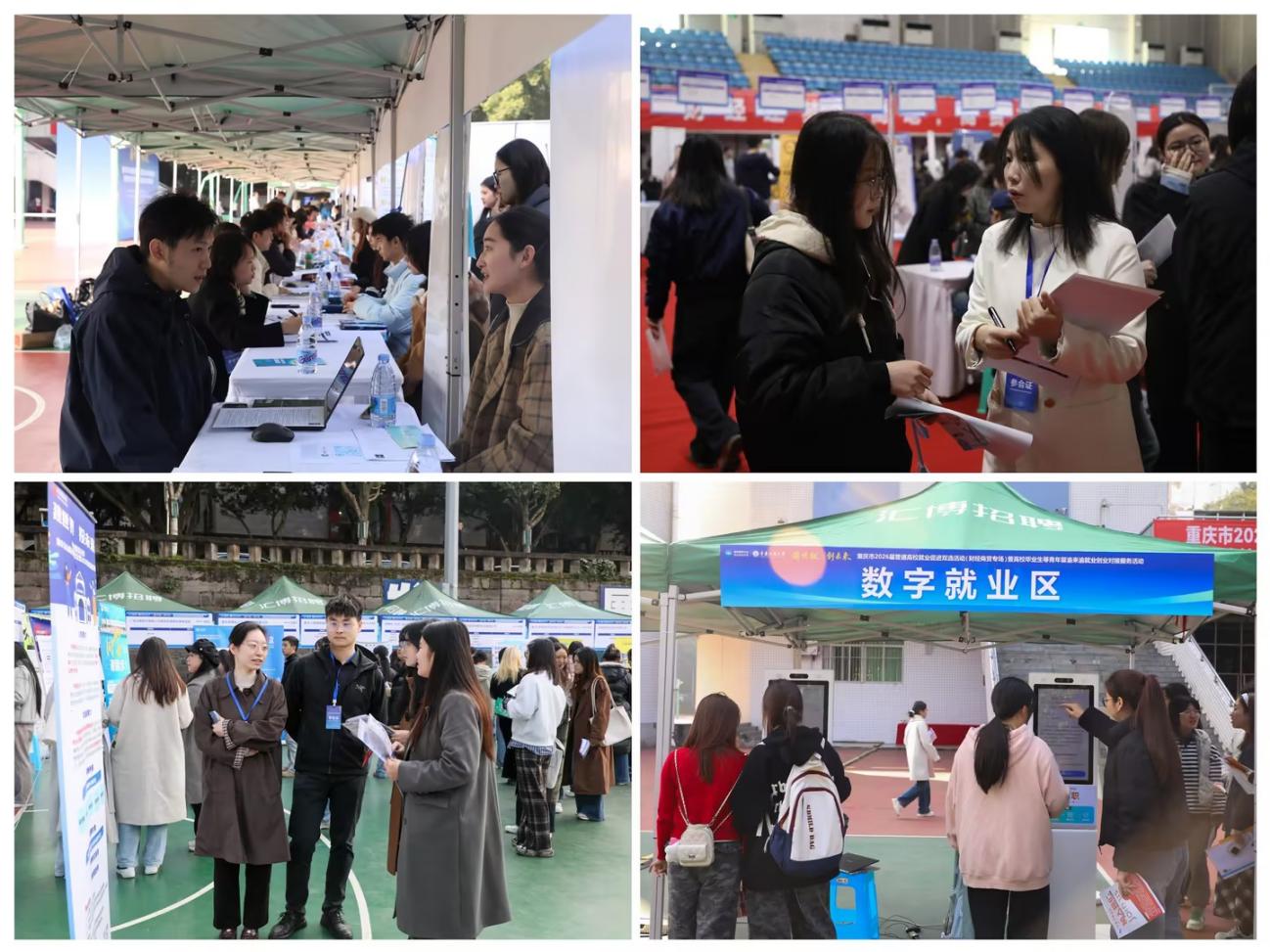11月21日,由重庆市教育委员会、重庆市人力资源和社会保障局与pp电子游戏平台网站联合主办的“渝快就·创未来—重庆市2026届普通高校就业促进双选活动(财经商贸专场)暨高校毕业生等青年留渝来渝就业创业对接服务活动”在pp电子南岸校区体艺馆举行。学校党委书记曾维伦,党委常委、副校长李国军,市学生就业与创新创业服务中心副主任徐珮杰等领导到现场进行指导。