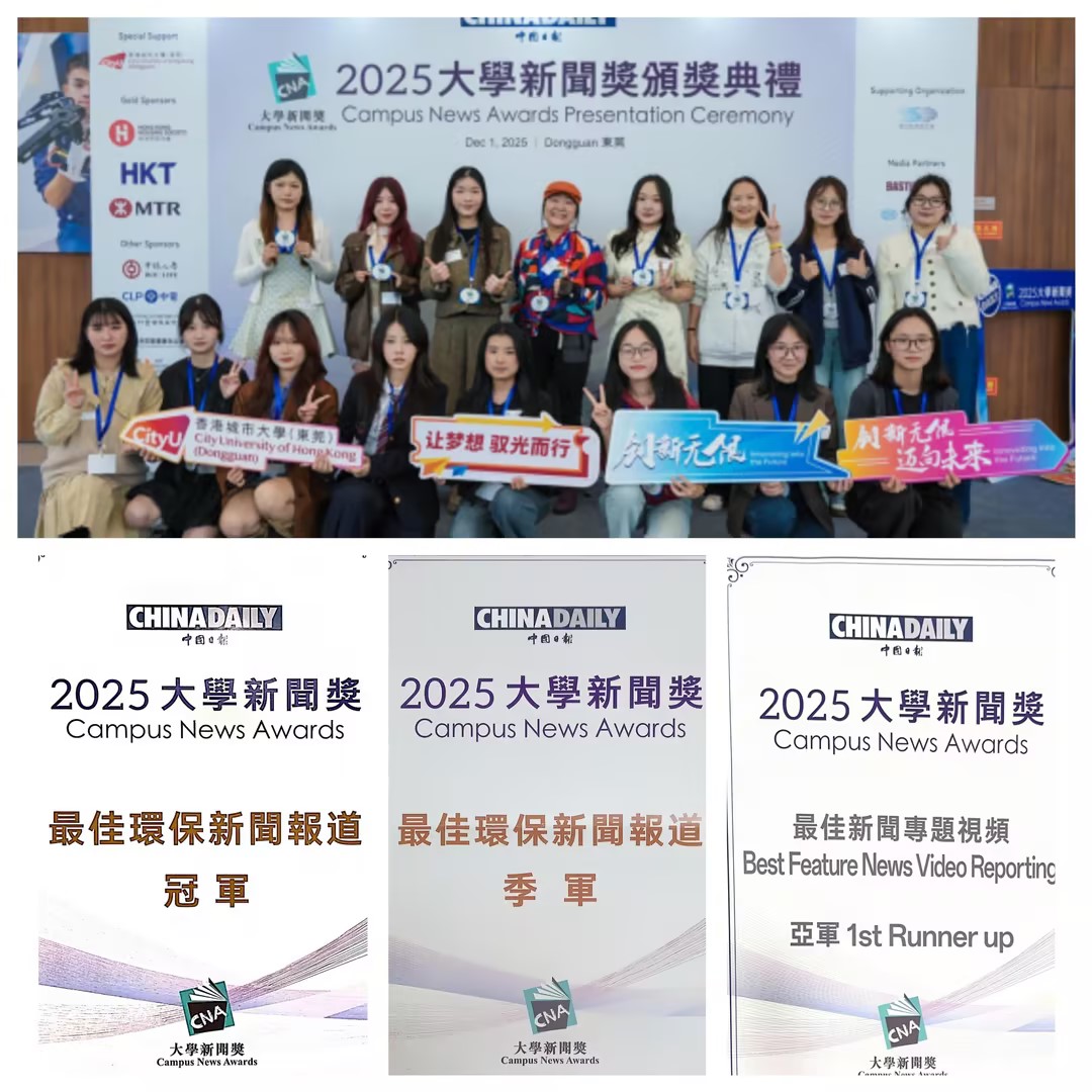 12月1日下午,由中国日报主办的“2025大学新闻奖”颁奖典礼于香港城市大学(东莞)举行。pp电子文学与新闻学院学子在大赛中表现卓越,共三件作品脱颖而出,分别荣获中文组“最佳环保新闻报道”冠军与季军,“最佳新闻专题视频”亚军。pp电子成为本届赛事中重庆市唯一获奖高校,荣获本届大赛“最踊跃参与学校奖”。