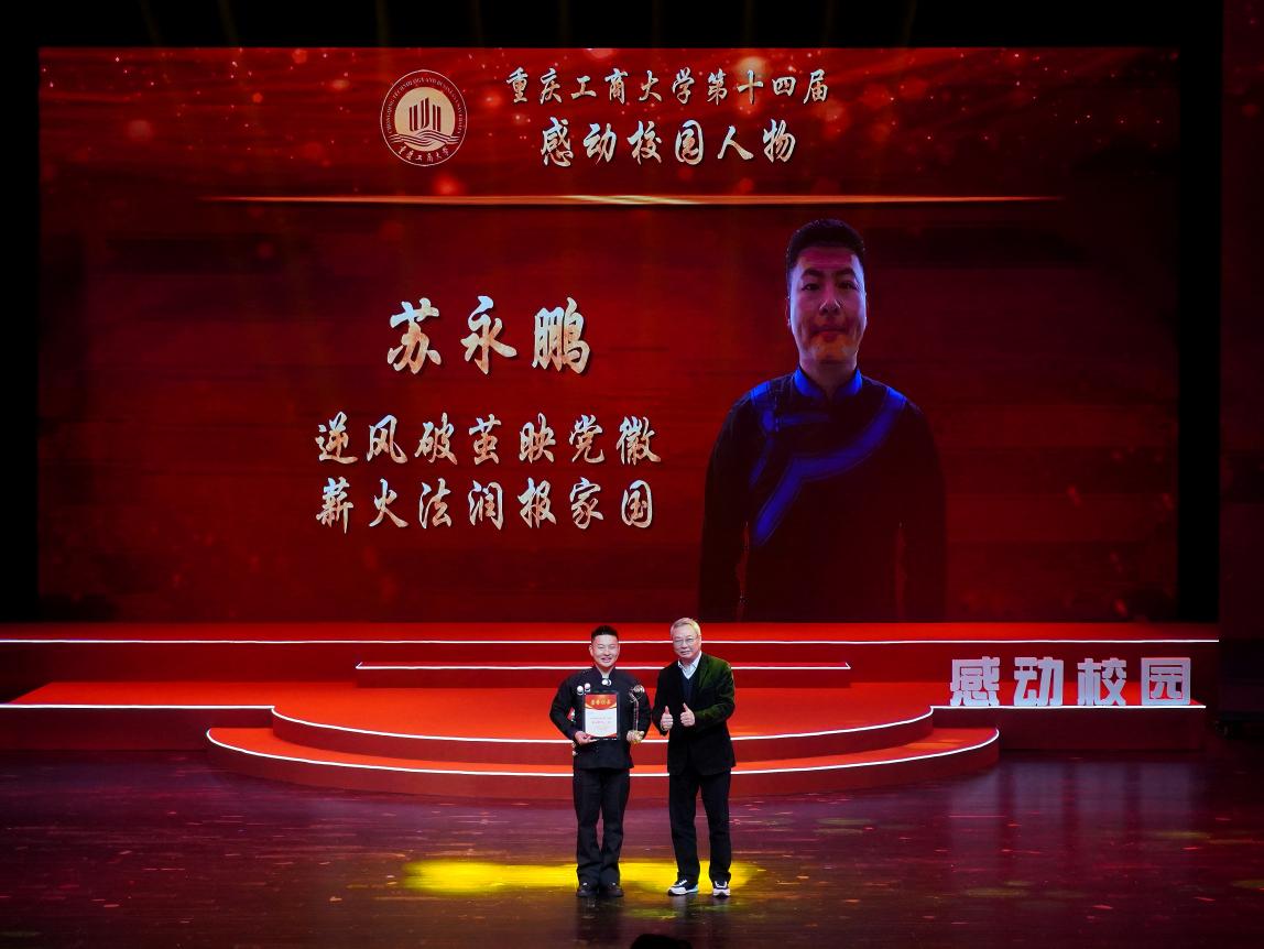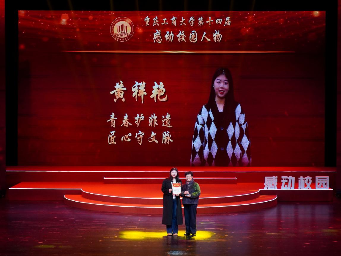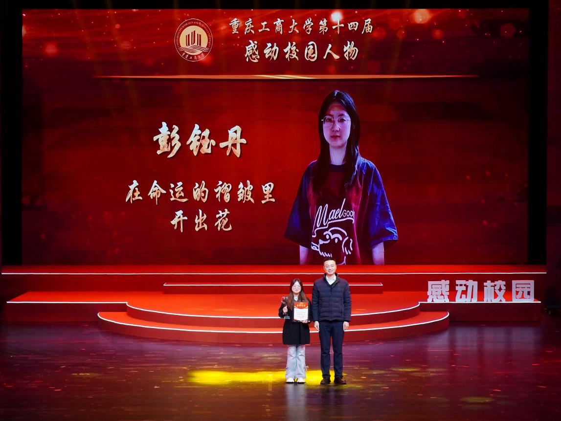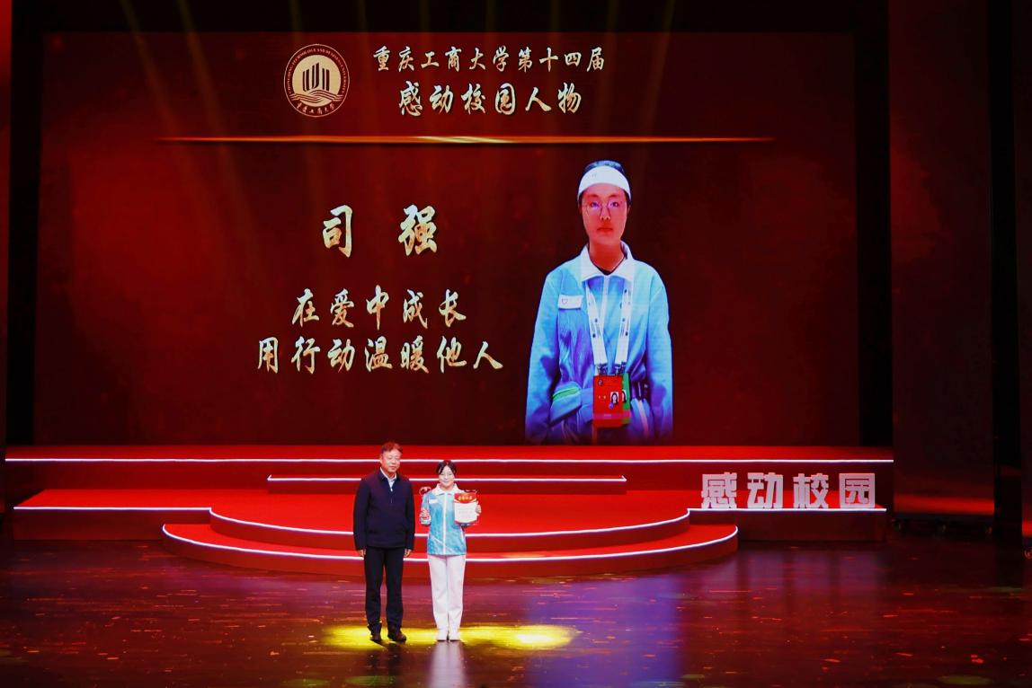 本届“感动校园人物”是从大山走来受助入学成长为热心志愿服务、播撒温暖青春公益使者的外国语学院2022级商务英语专业学生司强;从传承大漆技艺到校园推广非遗,以匠心与行动守护文脉,践行青年责任与担当的工商管理学院2022级旅游管理专业学生黄祥艳;在家庭重担下奋发有为,以优秀学业和积极志愿服务,诠释逆境中的自强不息精神的公共管理学院2021级土地资源管理专业学生彭钰丹;十七年如一日,以专业知识服务特殊儿童等多类弱势群体,用持久奉献传递志愿精神的文学与新闻学院“文小青”青年志愿者服务队;以优秀领导力组建团队在第十三届亚太地区商学院沙漠挑战赛勇创佳绩,为校争光的2023级MBA研究生何羽菲;深耕生物识别技术十二年,从科研小组到组建科创公司,搭建连接学术与产业科创平台,彰显青年学子科创报国的人工智能学院脉盾科技团队;用短视频传播千年陶艺星火,以新媒体流量助力爱心公益与非遗传承,在志愿服务与科创竞赛中展现Z时代青年担当的工商管理学院2022级旅游管理专业学生易超;组建跨学科科研团队坚持八年攻坚,多篇论文入选ESI全球前1‰高被引论文,更将理论应用于桥梁健康、人体健康预警,勇攀科研高峰的灰色预测理论创新研究团队;大学期间连续3年,9次带领普法团队返回家乡大凉山开展“渝见凉山”义务普法活动,考取选调生返乡服务,以所学回馈家乡、感恩担当的法学与社会学学院2021级法学专业学生苏永鹏;以党建引领为核心,依托学校“商工融合、多科协同”的学科优势,扎根乡村一线,推动乡村振兴对口帮扶工作的“工商红”学校派驻忠县乡村振兴帮扶干部团队。