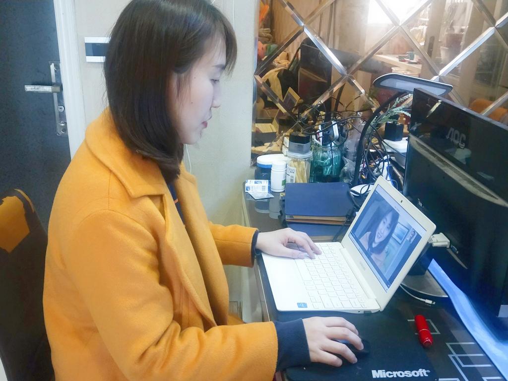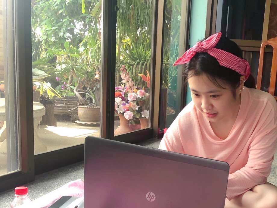 留学生美佳正在泰国家中进行直播课程学习