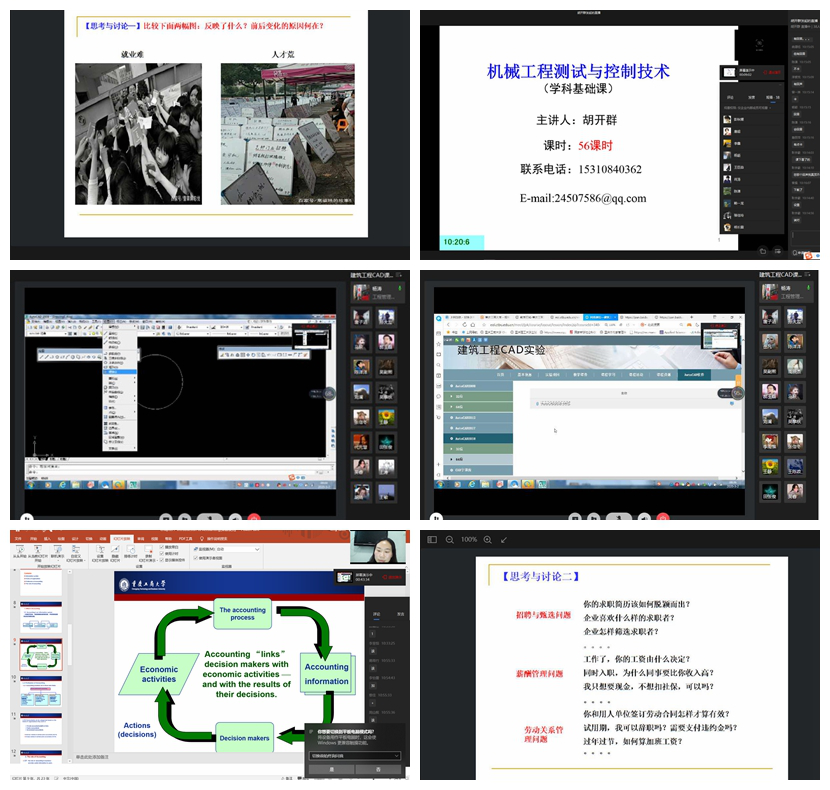 为确保在线教学顺利开展,各个学院领导,系主任,任课教师付出了极大的努力。基础不好、没有基础的各个年龄层次的教师,从头学起,短时间内不仅达到了教学要求,而且掌握了在线教学技能技巧。专家和基础较好的老师,发扬了奉献精神,不计得失,对其他老师给予了极大的帮助。