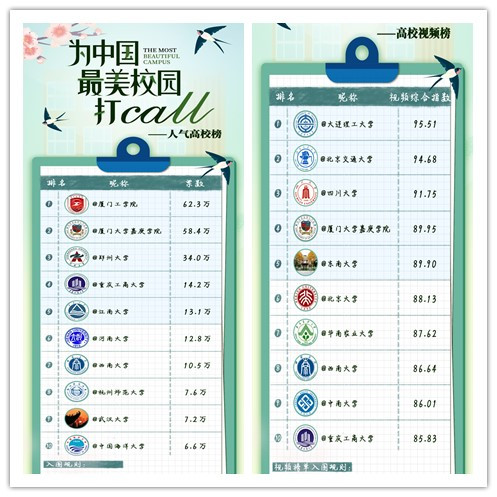 寒冬已去,花已开好,虽在远方,但念校园。3月30日-4月20日,@微博蓝V视频 @微博校园 @微博政务,共同发起了全国高校网络活动——“为中国最美丽校园打call”,北京大学、清华大学、复旦大学、上海交通大学等全国约260所高校共同参与,用图文和视频记录回顾校园最美好的瞬间。在全校师生共同努力下,pp电子最终荣获人气高校榜全国第4名,高校视频榜全国第10名,话题大赛榜第18名的好成绩。