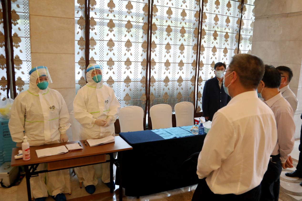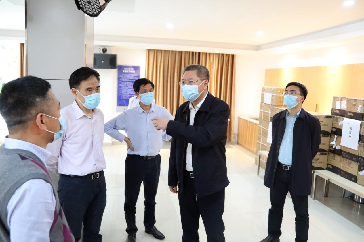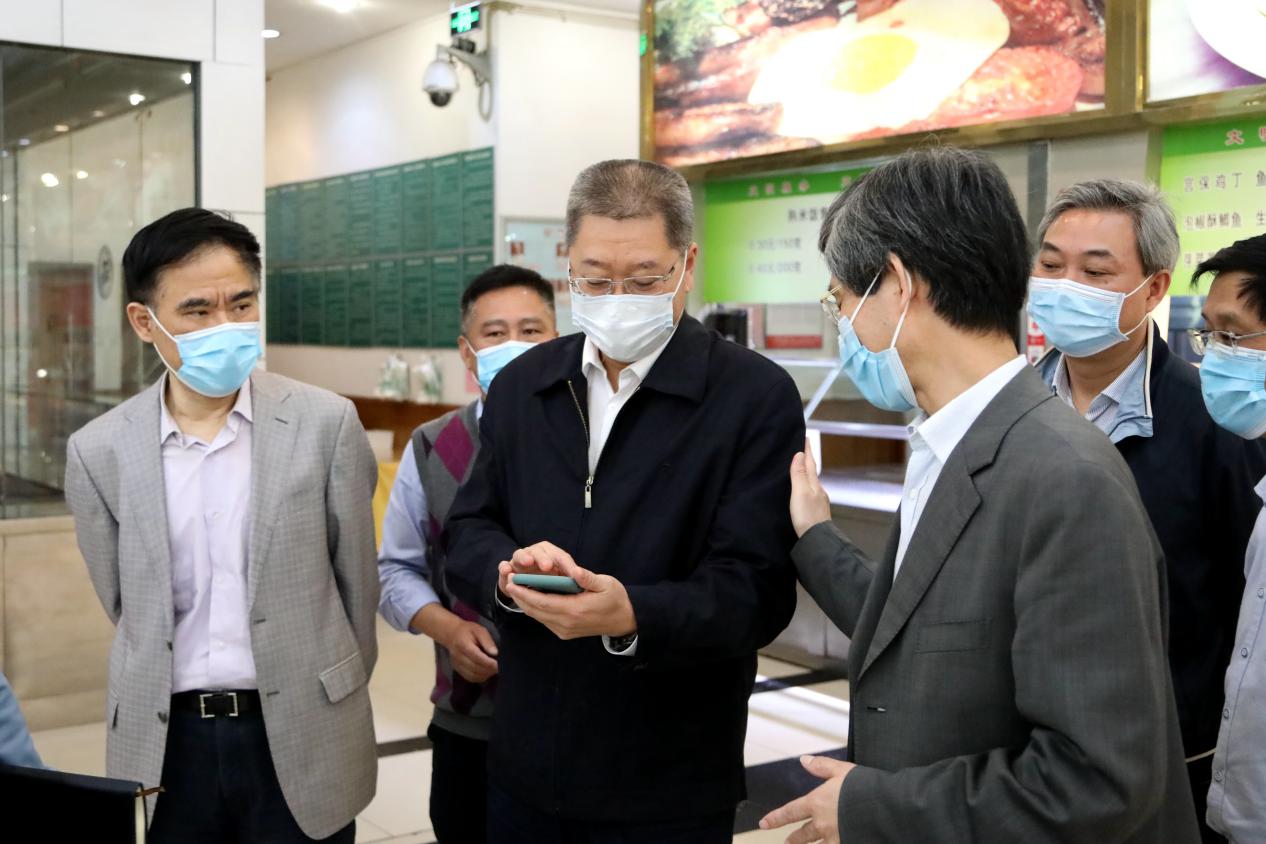 4月29日,市委教育工委书记、市教委主任黄政一行来到pp电子游戏平台网站检查疫情防控及开学前准备工作,黄政走进学校食堂,了解食堂取餐用餐、错峰就餐等情况,检查饭菜质量及食品卫生;检查学校开学前防控物资储备和设置隔离点情况,在学校健康观察点向医务人员表示感谢。黄政要求,一定要把疫情防控工作作为当前重中之重的任务,切实保障师生员工的身体健康和生命安全,从严从实从细从快落实好各项防控措施,坚决打赢高校开学复课这场疫情防控阻击战。