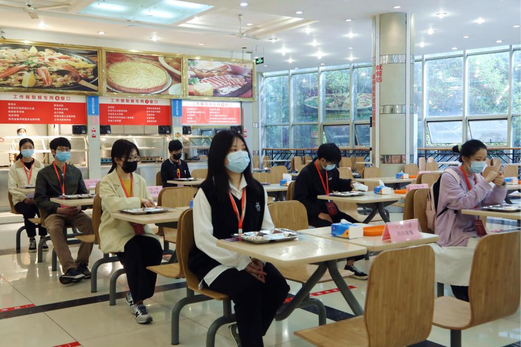 场景三:食堂就餐应急演练——保持距离、同向就餐