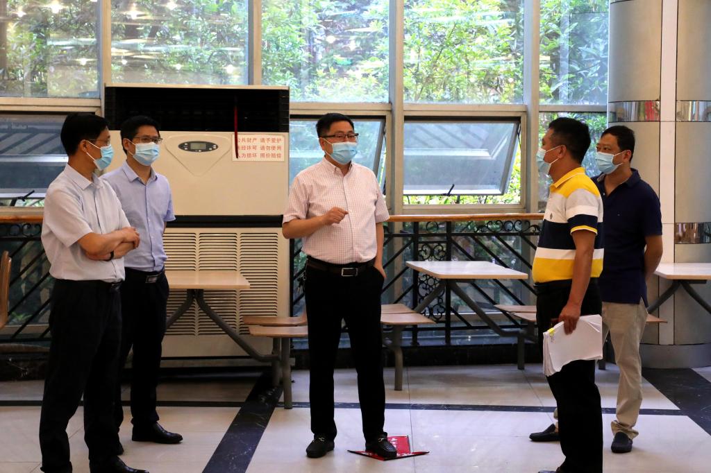 5月8日,市委教育工委委员、市教委专职督学莫龙飞一行到pp电子调研疫情防控和学生返校前准备工作。学校副校长陈兴述、李国军和相关职能部门负责人陪同调研。