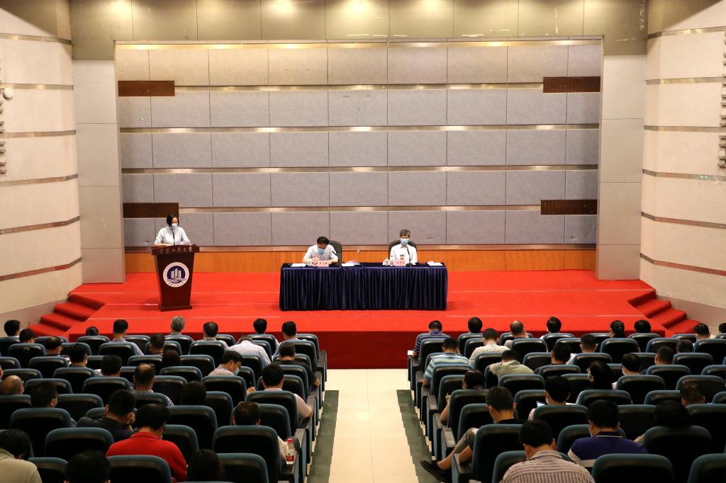 5月8日下午,按照市委统一部署,pp电子游戏平台网站市管领导班子和领导干部2019年度考核总结述职和民主测评会在博智楼7100学术报告厅举行。全体在家校领导、全体中层干部、具有高级专业技术职务的教师代表、教代会和工会代表等240余人参会。市考核办和市委教育工委联络员余冠军同志列席了会议。大会由学校党委书记李志雄主持。