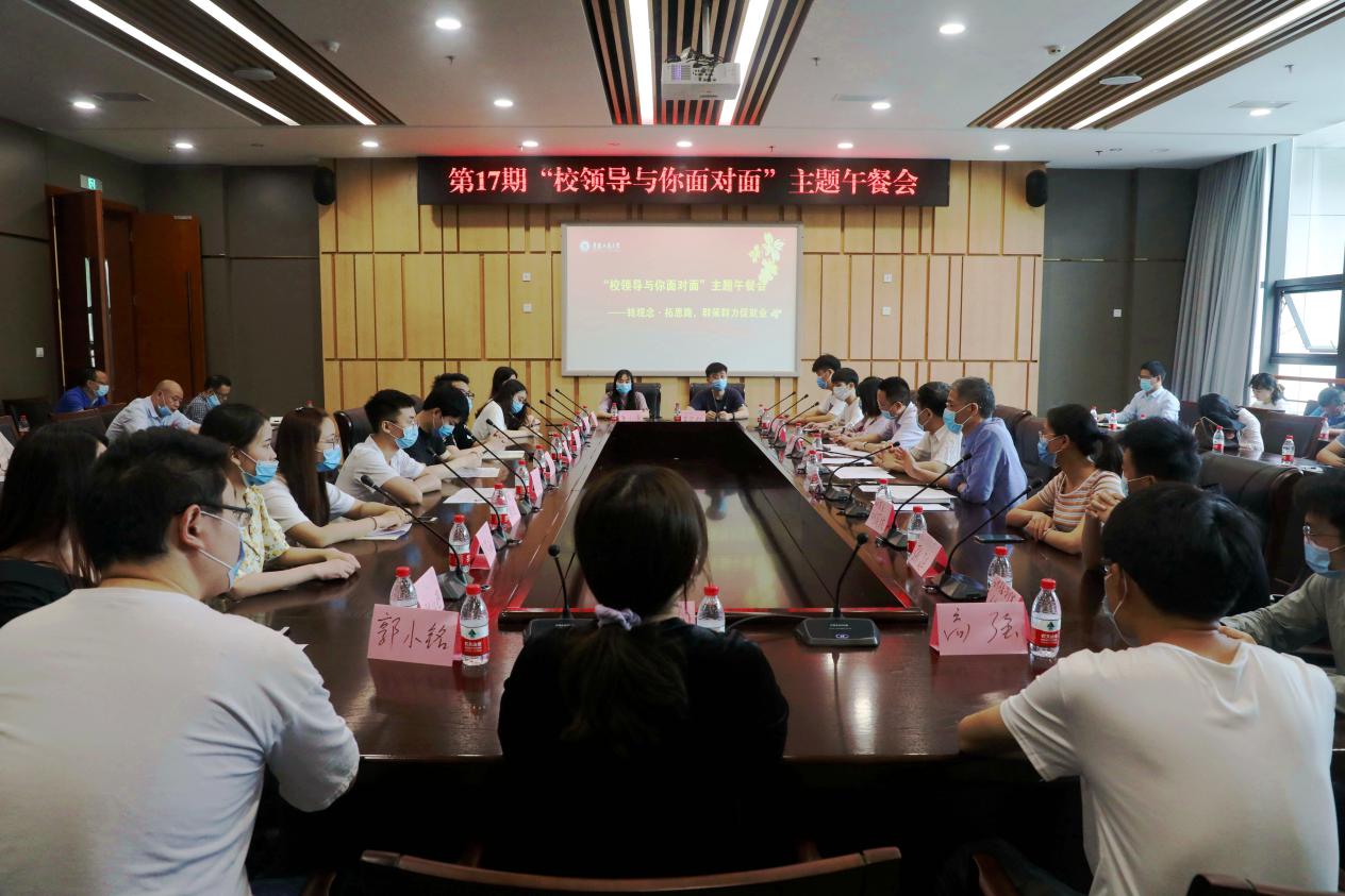 为全面贯彻李克强总理对全国普通高等学校毕业生就业创业工作电视电话会议作出重要批示精神,积极落实落细学校2020届毕业生就业工作,6月4日上午,pp电子在新图书馆五会议室举办主题为“转观念、拓思路,群策群力促就业”的第17期“校领导与你面对面”主题午餐会。校党委书记李志雄,副校长陈运超,相关职能部门负责人、各学院党委(党总支)书记,毕业生代表参加。会议由陈运超主持。