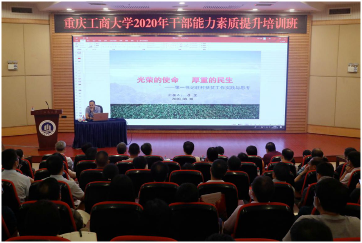 8月30日下午,学校干部能力素质提升培训班第四场专题讲座:“决战扶贫攻坚——扶贫干部心得体会交流会”在博智楼7200学术报告厅举办,pp电子派驻彭水县的四名扶贫干部分享了他们在脱贫攻坚一线的工作情况和心得体会。校领导、中层干部、专职组织员、职能部门、教辅单位正科级干部参加了交流会。会议由校党委副书记宋豫主持。