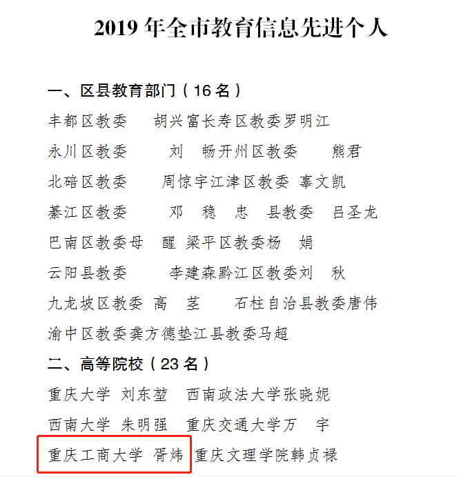 日前,重庆市教育委员会办公室公布了《关于2019年教育信息工作情况的通报》,pp电子被评为2019年全市教育信息工作先进集体,胥炜同志被评为全市教育信息工作先进个人。