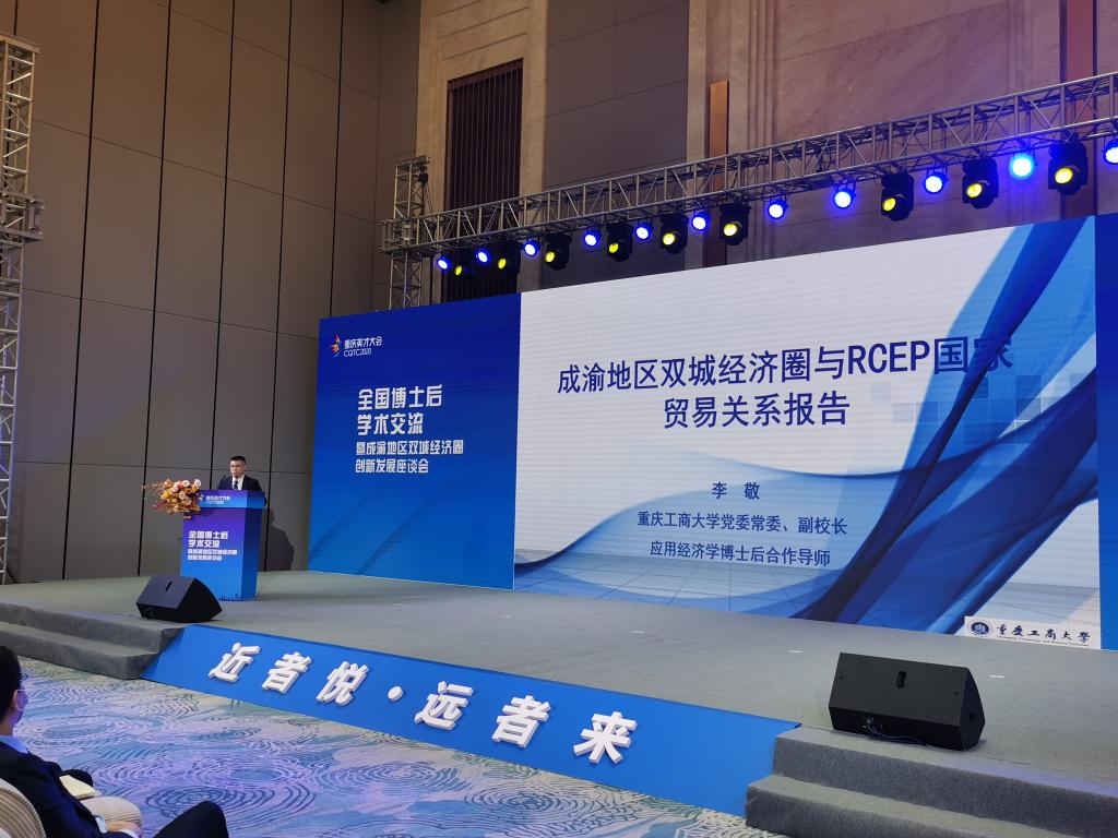 在主题演讲和学术交流环节,国家发改委国土开发与地区经济研究所所长高国力研究员通过视频的方式分享了题为“全面提升成渝地区双城经济圈的战略位势”的大会报告。获奖博士后电子科技大学蒲波和pp电子游戏平台网站赖辉应邀作了主题发言。李敬现场作了《成渝地区双城经济圈与RCEP贸易关系数据发布报告》,获得全场好评。