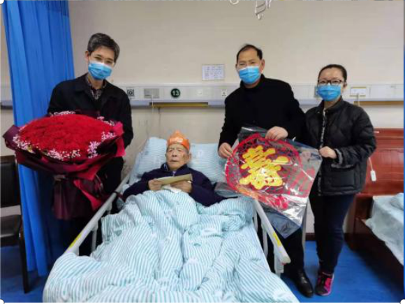 孙芳城向邓平送上了鲜花和生日蛋糕,代表学校党政送上了诚挚的祝福,大家一起为他唱了生日歌,祝福他生日快乐、早日康复。孙芳城代表学校对邓平为学校作出的贡献表示感谢,邓平和家属对学校的关心,特别是疫情防控时期专程来医院看望慰问、送来生日祝福深表谢意。孙芳城还和邓平一起回顾了学校的办学历史,邓平十分关心和关注学校的发展。