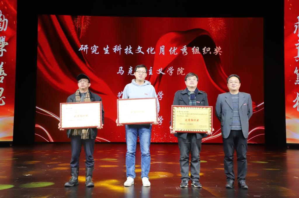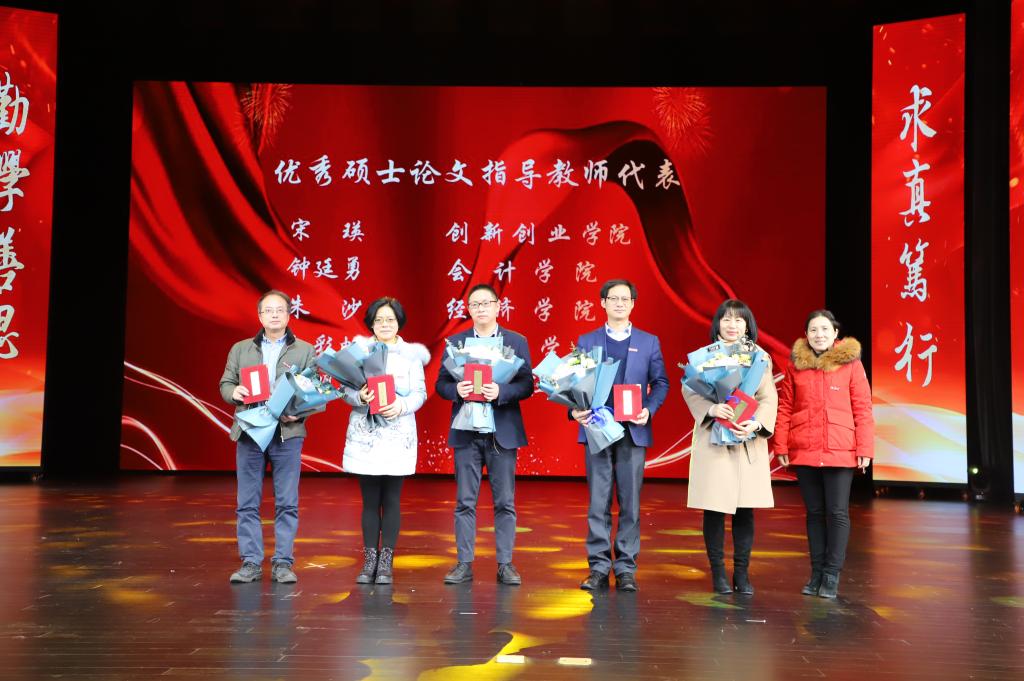 现场颁发了优秀硕士论文指导教师、优秀硕士生导师、研究生就业先进集体、研究生科技文化月优秀组织奖,并为研究生国家奖学金代表、研究生科技创新先进个人代表、优秀研究生代表、优秀研究生干部代表颁发了证书。