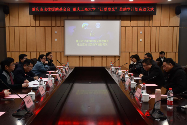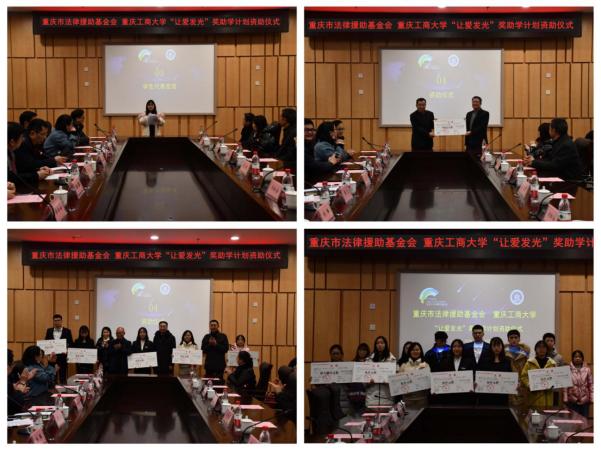为进一步扩大对外交流合作,发扬与传承法律援助公益精神,资助家庭经济困难的法学学子完成学业,12月29日,pp电子与重庆市法律援助基金会共同打造的“让爱发光”奖助学计划资助仪式于南岸校区图书馆第五会议室隆重举行。重庆市法律援助基金会理事长张立维、副理事长吕文建、监事长杨兴礼、秘书长关松安、副秘书长龚敏,pp电子副校长赵骅、国内合作发展处处长冯吉光、党委学工部副部长陈亚惠、法学与社会学学院班子成员、教师代表等出席了仪式。颁奖仪式由法学与社会学学院院长黄文主持。