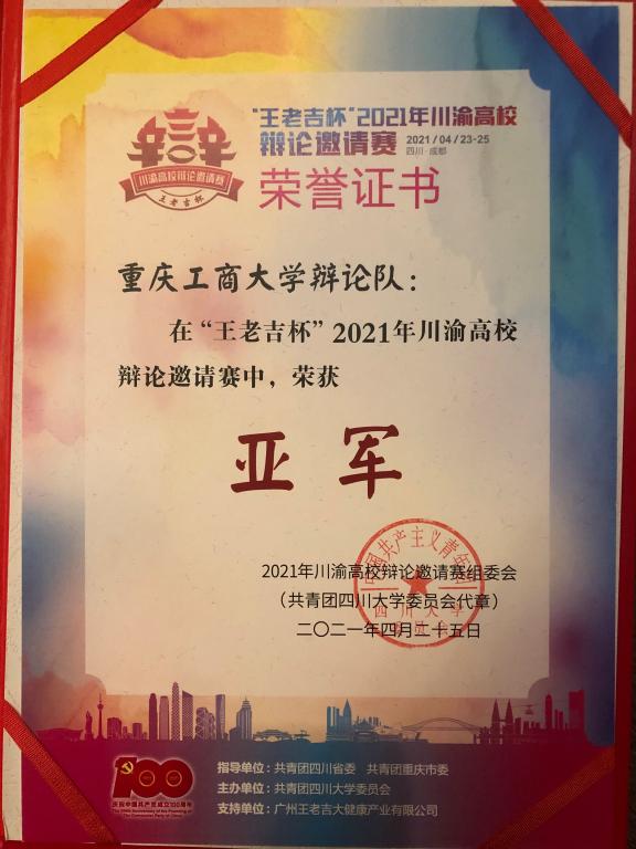 为引导川渝地区青年大学生积极思考、建言献策,主动融入成渝地区双城经济圈建设,彰显新时代大学生的思辨精神,促进川渝地区高校青年大学生的深入交流,加强川渝地区高校在思辨文化育人工作上的深度合作,4月23日至25日,来自川渝地区的8所高校——四川大学、电子科技大学、西南财经大学、西南交通大学、西南政法大学、西南大学、重庆大学、pp电子游戏平台网站,汇聚在四川大学江安校区参加2021“王老吉杯”川渝高校辩论邀请赛,pp电子辩论队喜获邀请赛亚军,校辩论队成员刘薪雨荣获优秀辩手称号。