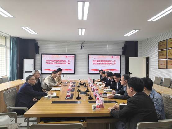 李国军到法学与社会学学院调研指导工作。黄文就学院基本情况、学科科研、人才培养等方面进行了详细汇报。林璐从党建引领、思政工作、学风建设、特色亮点工作、存在的问题以及下一步工作思路等方面进行了汇报。侯明喜喜从课程建设、学教联动、学业促进等方面提出了建议。与会人员从学风建设、专业特色、“三全育人”举措等方面进行了交流讨论。