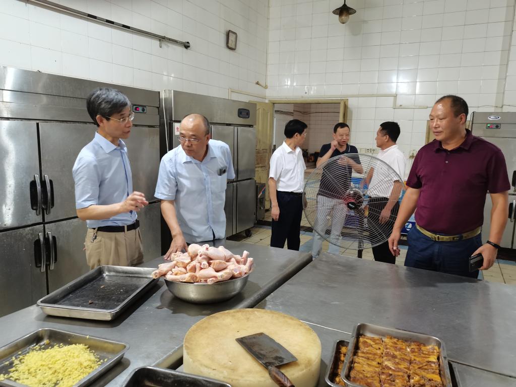 7月5日下午,校长孙芳城、副校长陈兴述深入学校各食堂,对食品安全、食堂管理等工作进行检查,资产管理处、后勤处等部门负责人陪同检查。
