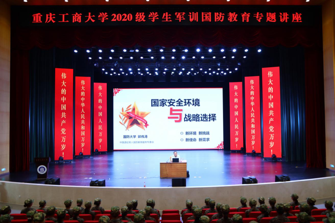 为配合做好2020级学生军训工作,增强学生国家意识和国防意识,提升军训实效,7月9日下午,pp电子党委武装部在南岸校区剧场举办国防教育专题讲座。校党委常委、副校长李国军,党委常委、党委宣传部部长华杰,校纪委委员、党委保卫部部长钱忠坤,党委武装部部长申卫东,以及570多名军训学生一起聆听了讲座。
