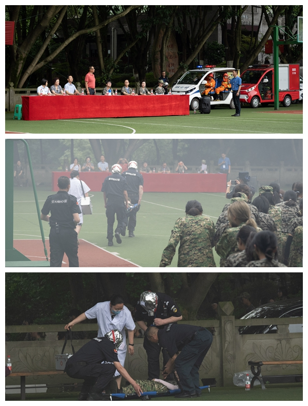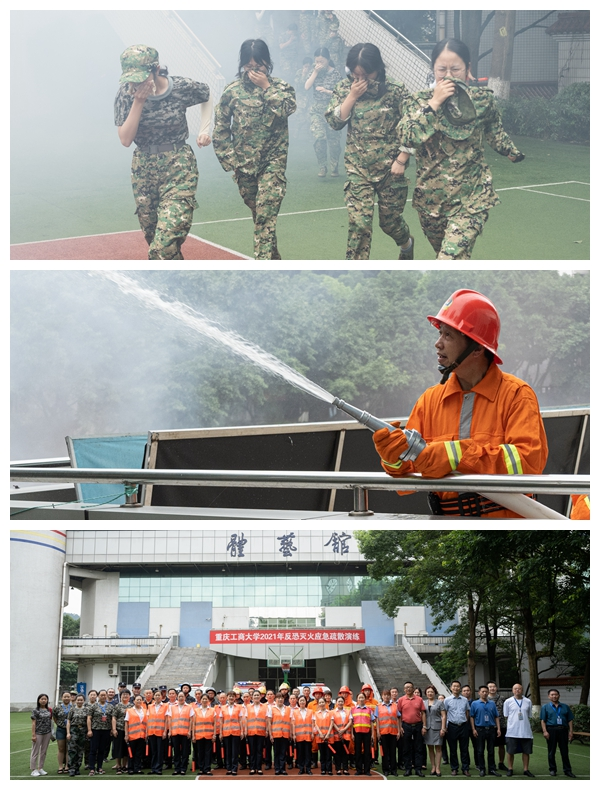 为了进一步普及安全知识,增强安全意识,提高自防自救能力,检验相关部门处置突发事件的能力,提升学校安全管理水平,7月9日上午,党委保卫部(保卫处)、党委学工部(学生处)在学校体艺馆联合举行了pp电子游戏平台网站2021年反恐灭火应急疏散演练,部分正在军训的学生、军训教官和老师、安保队员、平安校园志愿者、保卫干部、物业管理人员和校医院医务人员共计3300余人参加了演练。