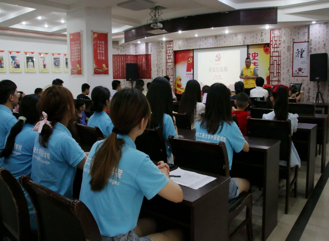 为引导广大社区居民朋友们学党史、知党事、感党恩、听党话、跟党走,7月15日上午,重庆市渝中区社区居民和pp电子游戏平台网站外国语学院2021暑期“三下乡”社会实践团一起上了一堂关于“红军长征”的特色党课,重庆市团校校长涂凯一行人莅临现场听取党课。重庆市渝中区老街公益文化发展中心成员童思斯从走长征路的前提、红军为什么能够获得长征的胜利以及红军怎样在长征途中获得老百姓的支持这三方面为同学们带来一堂别开生面的特色党课。同学们认真听讲,收获颇丰。
