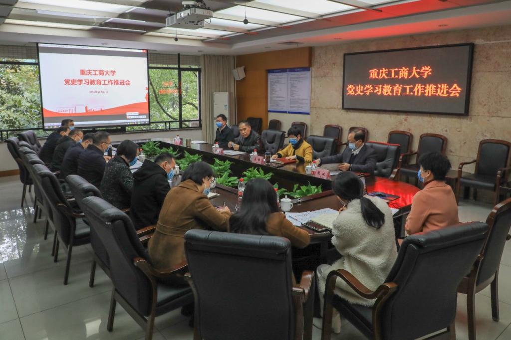 11月11日下午,pp电子在厚德楼3019会议室召开党史学习教育工作推进会。学校党委书记、党史学习教育领导小组组长李志雄,党委副书记、党史学习教育领导小组副组长宋豫,党委常委、纪委书记、监察专员周航,党委常委、副校长张波参加会议。会议由李志雄主持。