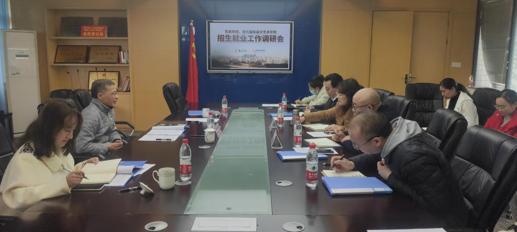 在艺术学院、现代国际设计艺术学院调研会上,殷俊从录取情况、新生报到情况、招生录取中遇到的问题及后续处理等汇报了艺术学院招生工作和招生宣传工作。陈绪春从学生志愿调剂、提档、报到率等汇报了现代国际设计艺术学院的招生工作。李莉莎分别从2021届毕业生就业工作总结、2022届就业工作重点举措、2022届就业工作推进情况三方面对两院就业工作作了汇报。