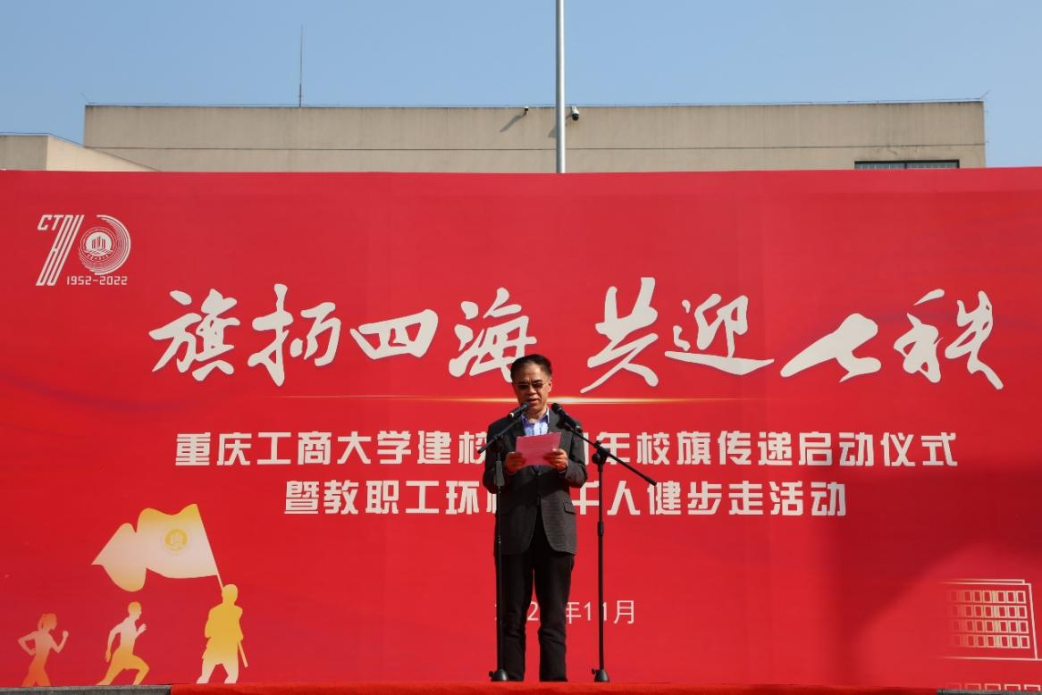 11月26日下午,pp电子在含弘广场隆重举行pp电子游戏平台网站建校70周年校旗传递启动仪式暨教职工环校园千人健步走活动。学校党委书记李志雄,党委副书记宋豫,党委常委、副校长陈运超、李国军、李敬,学校校友会副会长王敬春、周勃、赖家国以及教职工代表700余人、校友代表70余人、学生代表70余人、其他代表70余人参与了此次活动。活动由宋豫主持。