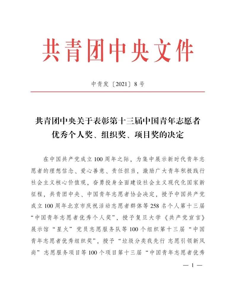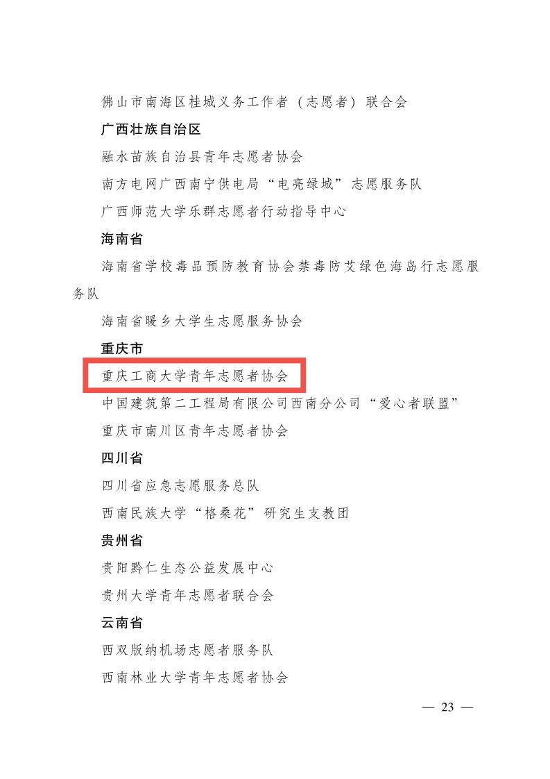 11月30日,共青团中央发布《关于第十三届中国青年志愿者优秀个人奖、组织奖、项目奖的决定》,pp电子游戏平台网站青年志愿者协会获评第十三届“中国青年志愿者优秀组织奖”。该奖项是全国志愿服务类评选的最高荣誉,2021年全国共评选优秀组织奖100个,其中重庆市获奖3个,pp电子是唯一一个获奖高校。